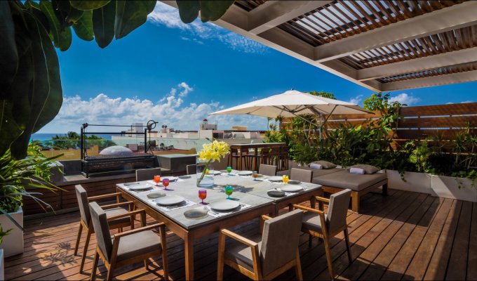 Throw a rooftop party on your outdoor terrace with panoramic ocean views, daybeds and a barbecue dining area.