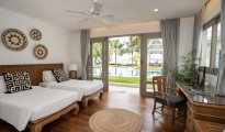 The spacious bedrooms are furnished with comfortable beds. With five, air-conditioned bedroom suites, the rooms are decorated with traditional artwork and feature wooden flooring for a luxe ambiance.