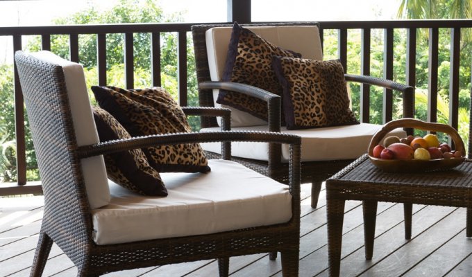 Royal moments await you in a luxury villa . Villa with a total capacity of 6 people has three bedrooms, one of which has the status Masterbedroom with King bed, the other two bedrooms have queen size beds. Each bedroom has its own bathroom equipped with high-end products and brands Villeroy & Boch and Axor Massaud, bathroom master bedroom of the villa is equipped with designer bath. All bedrooms are fully air conditioned, living room and terrace area is equipped with ceiling fans. The entire interior of the villa is equipped with stylish massive furniture from Bali. The living area provides sufficient comfort for relaxing or lounging and watching movies or listening to music through audio-visual technology, Bang & Olufsen, internet and wifi. A spacious terrace with day beds and rattan seating offering spectacular views of the ocean. Queen villa has its own pool with overflow. The pool has an outdoor kitchen with a minibar. The delicious dishes will be prepared by a privat Chef which is fully at your disposal.