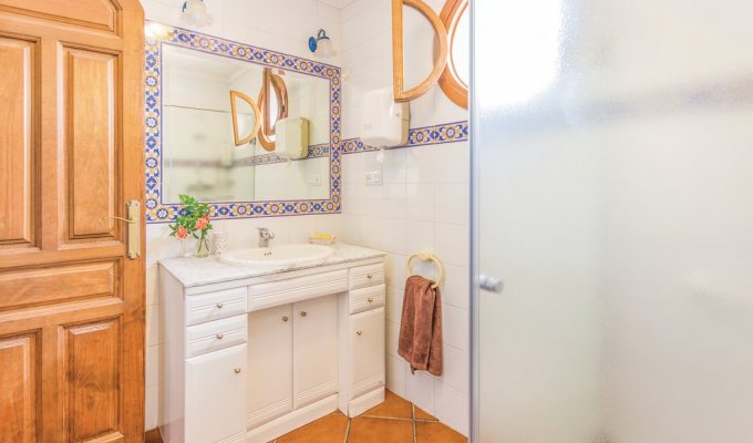 This elegant and cozy Andalusia villa rental is located in Cordoba countryside and offers plenty of space for up to 8 people on 250 m² with 4 bedrooms and 3 bathrooms. The traditional Andalusian villa with 2 floors is equipped with high quality furniture and detailed and stylishly furnished. On the ground floor there are 3 cozy living rooms, a bathroom, the kitchen and a small storage room. The beautiful terrace with comfortable seating is surrounded by shady trees and the balconies are adorned with pretty flower pots. At the back of the house you will find a beautiful garden with porch, barbecue, outdoor bath and shower and the large private pool with sun loungers where you can enjoy the fantastic climate of the region. The 4 bedrooms, another bathroom and a toilet are upstairs. On the property you will find an ecological vegetable garden. Here you also share the habitat with various farm animals such as horses, sheep, goats and chickens. At harvest time, the owner offers a complimentary breakfast and vegetables from the garden. The area counts with hiking trails, cave visits in the mountain Zueros and interesting destinations throughout Andalusia. The village of Zagrilla is just 2 km away. It is recommended to visit the European mushrooms exhibition center. Located 7 km away, Priego de Córdoba offers a variety of services including supermarkets, banks, shops and various entertainment venues. It is the ideal place for a holiday in the countryside with maximum comfort.