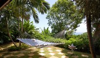 A pool deck and wonderful fresh-water swimming pool are a few steps down from the veranda and offer an impressive sea view clear to the horizon.