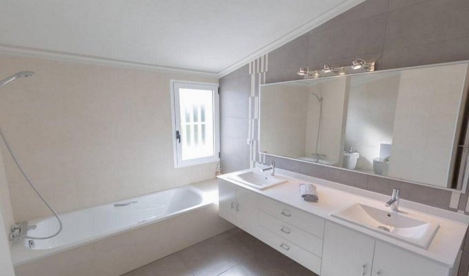 FIRST FLOOR HAS TWO WINGS, IN ONE WING 2 BEDROOMS WITH BALCONY IN EACH OF THEM AND ONE OF THEM WITH EN SUITE BATHROOM AND IN THE OTHER WING WE CAN FIND 3 BEDROOMS, ONE OF THEM WITH EN SUITE BATHROOM AND BALCONY AND ANOTHER INDEPENDENT BATHROOM. THE VILLA IS COMPLETELY RENOVATED.