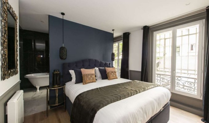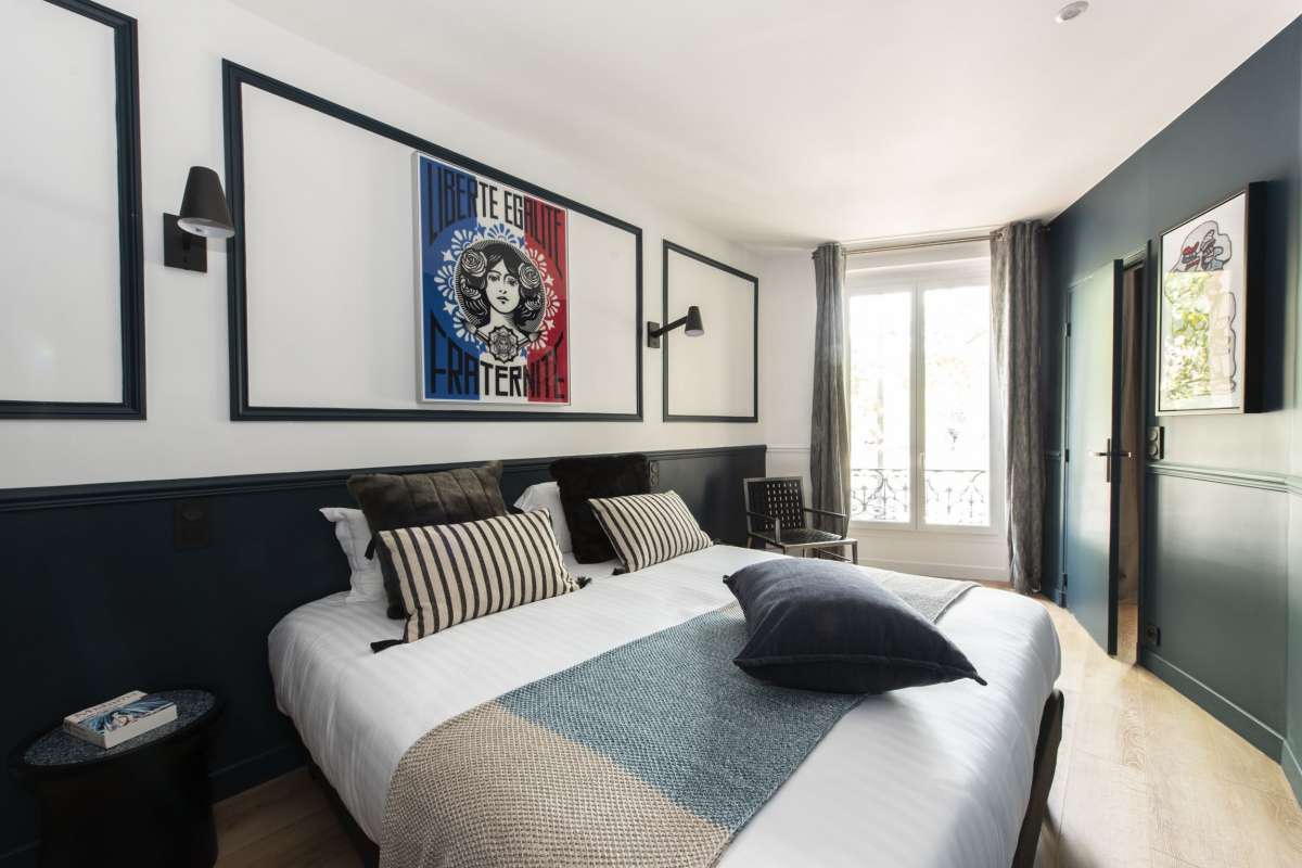 Paris Le Marais Short Term Holiday Apartment rental of 131 m2 with 4 bedrooms on the first floor without elevator overlooking the very large Place de la République.