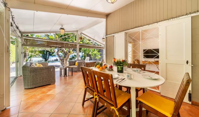 Perched on the edge of Aigrettes Beach, this traditional beach house offers breathtaking views of the Indian Ocean and an enchanting tropical setting. Surrounded by a lush garden, the property features a swimming pool, outdoor shower, and direct access to the beach. The terrace, perfect for whale watching or admiring sunsets, invites you to relax. We do everything we can to make your stay, your “home in paradise,” unforgettable.Other remarksA 10-minute walk away, you will discover the village of Boucan Canot, where you will find many restaurants and bars to explore. Need to stock up on supplies or snacks?Take a short 2-minute drive to the supermarket and stop at one of the many roadside fruit and vegetable stands.Want to explore further? Discover the surf spots at nearby Brisants Beach or drive 10 minutes further to the lively bars and restaurants surrounding Roches Noires Beach.House rulesCredit cards acceptedPets not allowedNo smokingNot wheelchair accessible
