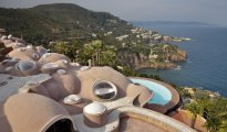 Facing the bay of Cannes, nestled in the Esterel massif, this surprising house located on the heights of Théoule-sur-Mer offers a striking view of the shores and ochre coves of the Riviera.