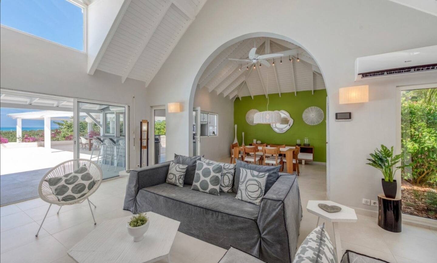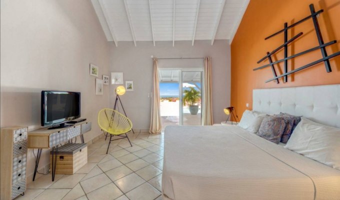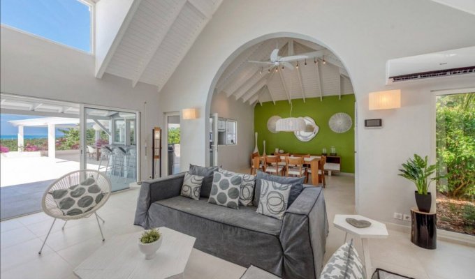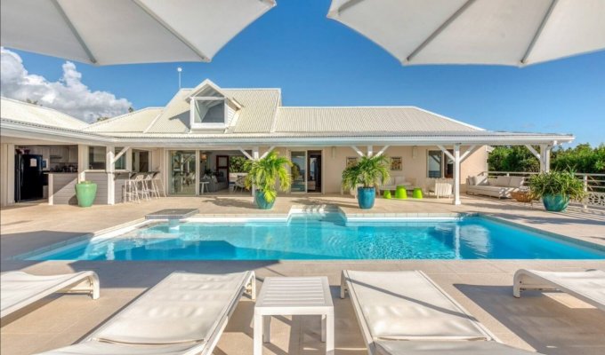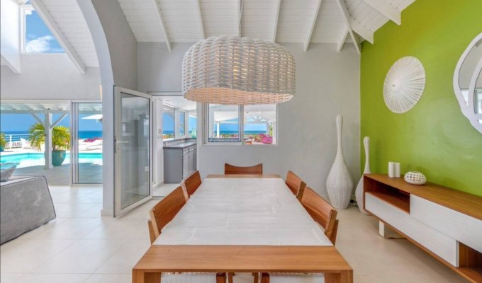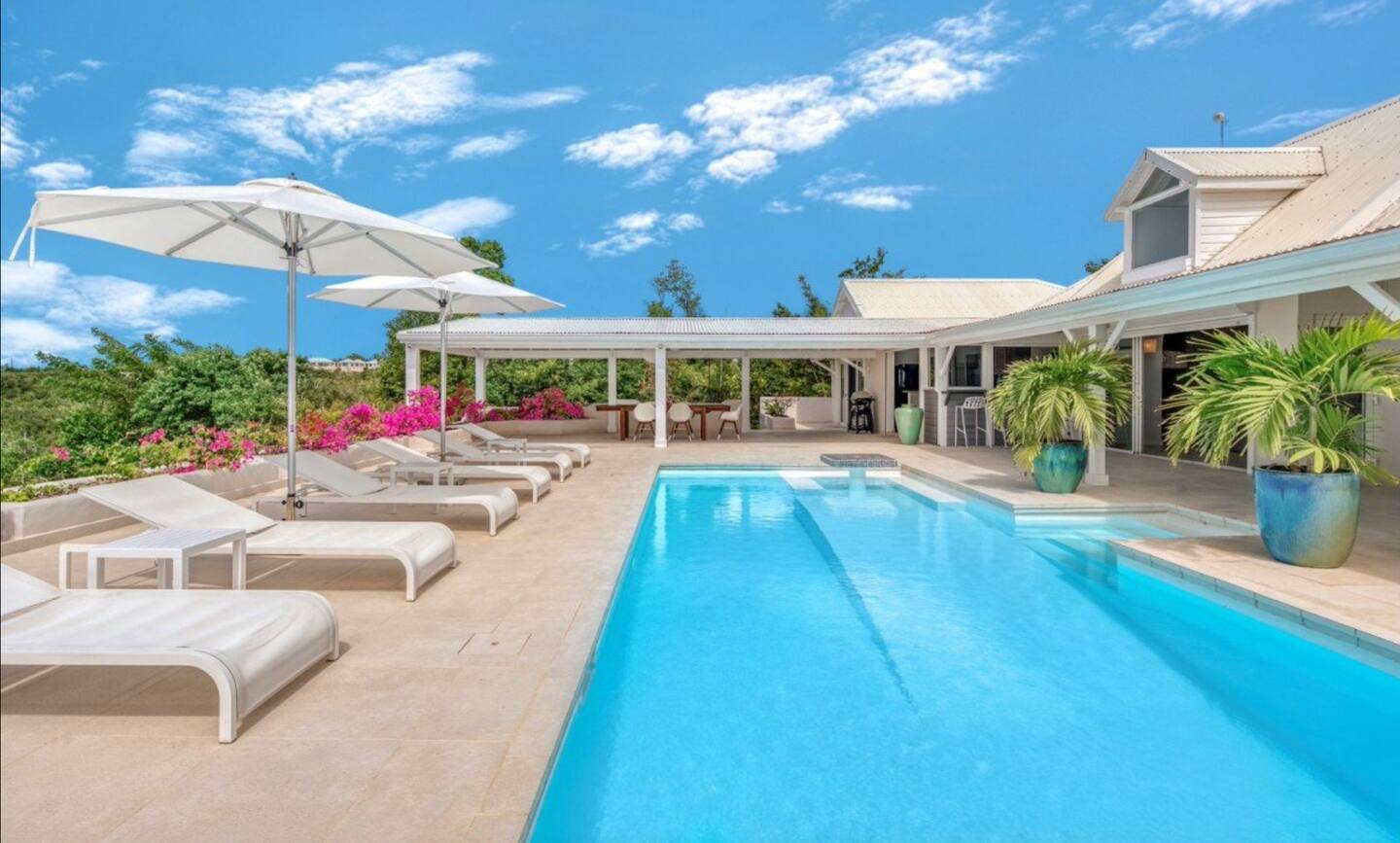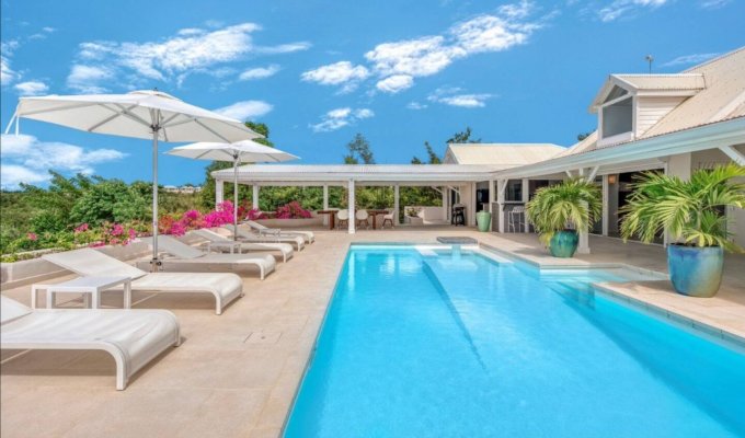 Villa La Magnolia is located in the gated community of Terres Basses, just minutes from the best beaches, yet surrounded by its own gardens, providing total privacy and beautiful views of the sea and sunset. The covered terrace at one end of the pool features a dining area and an outdoor barbecue, as well as an outdoor lounge that opens up to the colorful interiors.