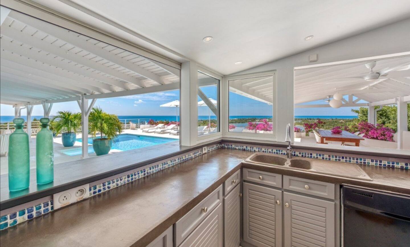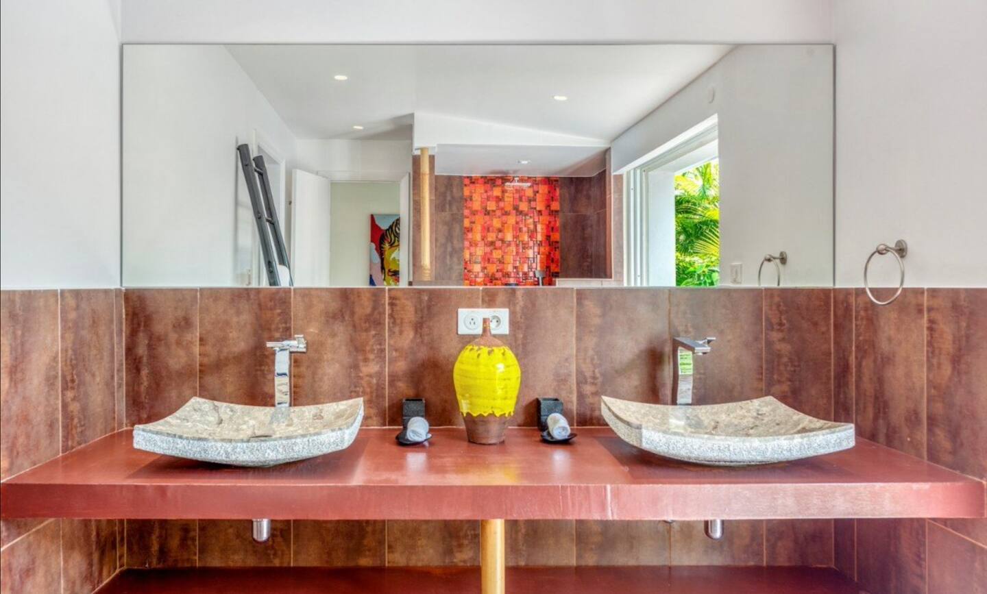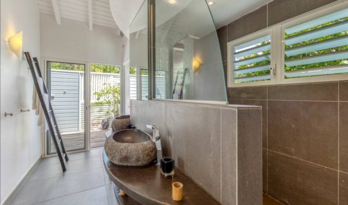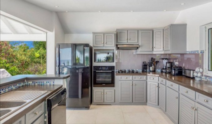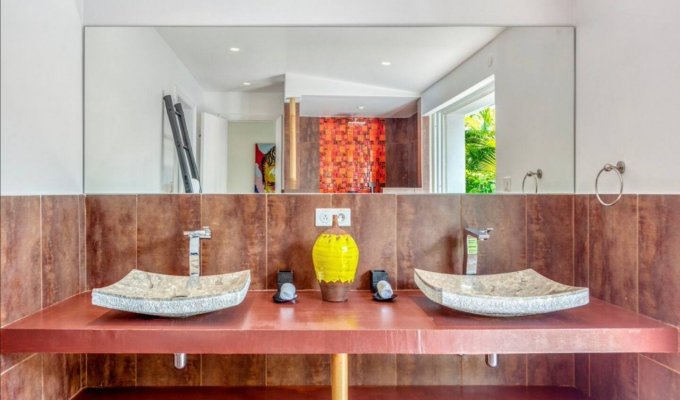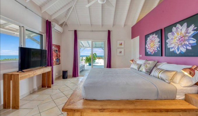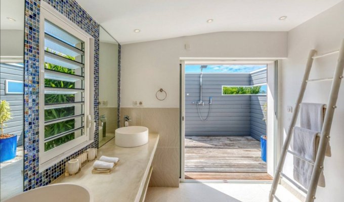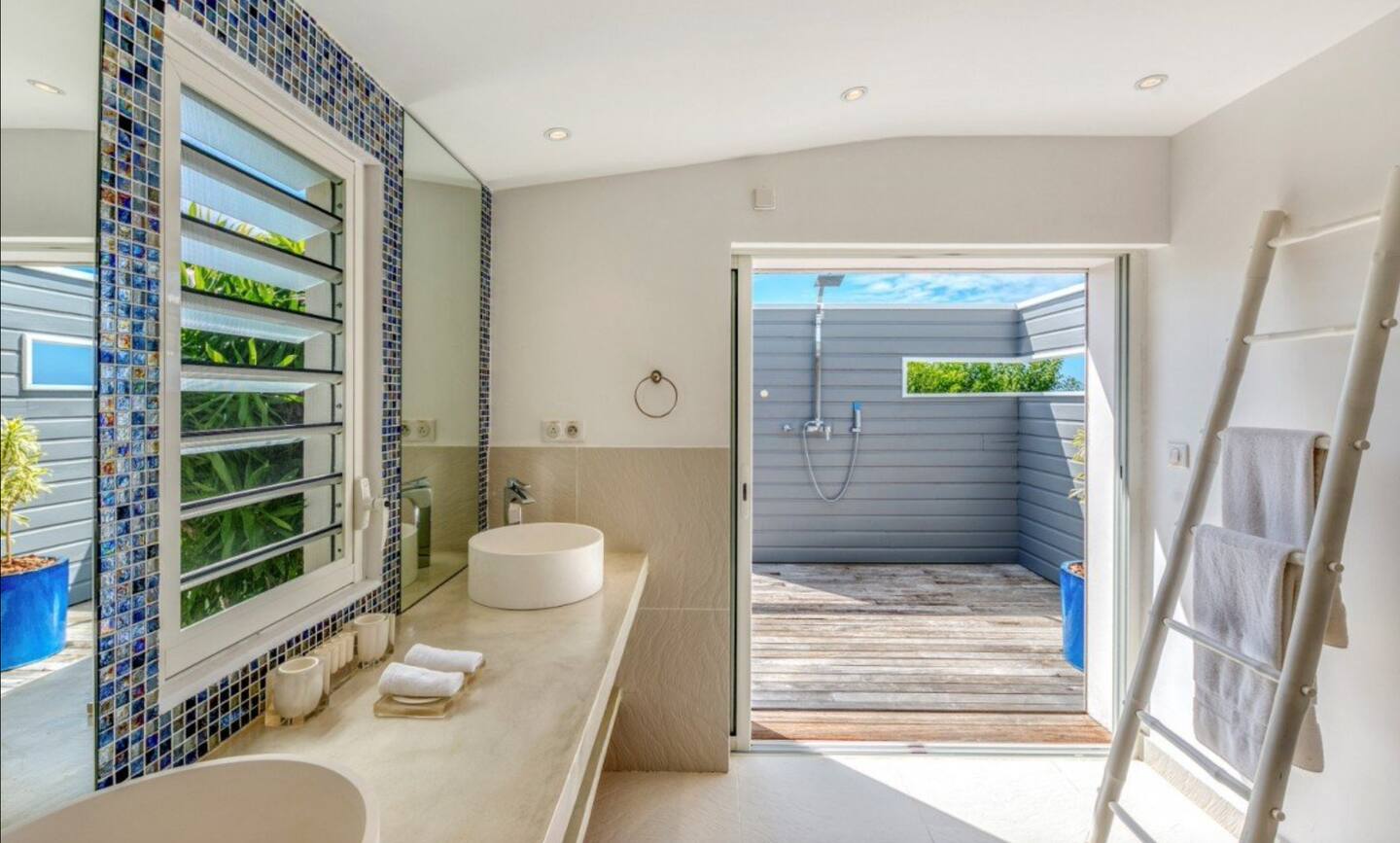 Villa La Magnolia is located in the gated community of Terres Basses, just minutes from the best beaches, yet surrounded by its own gardens, providing total privacy and beautiful views of the sea and sunset. The covered terrace at one end of the pool features a dining area and an outdoor barbecue, as well as an outdoor lounge that opens up to the colorful interiors.