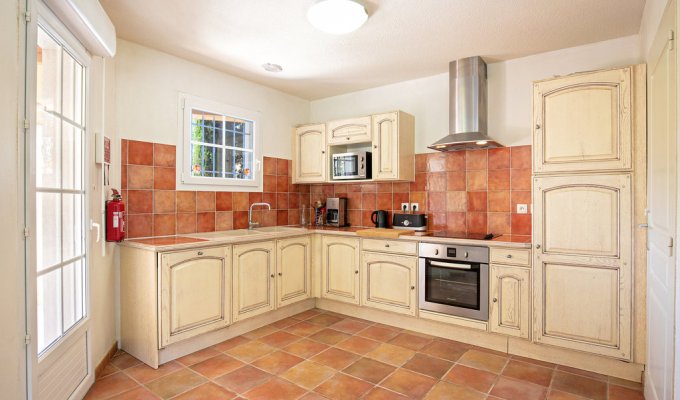 This pleasant house welcomes you in a dream panoramic setting, perfect for a peaceful holiday in Provence. The vacation home will enchant you with its bright rooms and tasteful decor in cheerful colors. Fully enjoy the moments spent together in an elegant atmosphere. Stay fit in the fitness room and settle down in the evening on comfortable sofas to relax after an active day and chat late into the night.