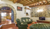 This 15th-century country house near the characteristic village of Vacone (800 m) in the province of Rieti (Rieti 31 km), owned by a noble Tuscan family, was once a hunting lodge. It offers a beautiful view of the Apennine foothills. Guests can enjoy spacious outdoor areas, a small round swimming pool that can be retracted and a slide or a playhouse for your children. In the garden, there is also a covered terrace for al fresco dining and a barbecue. The location of the holiday home is ideal for excursions to medieval monasteries, picturesque hilltop towns and the many archaeological sites to be found in the green Lazio countryside. Recommended excursions Vescovio Monastery (6 km), Farfa Abbey (18 km) and Sacro Speco Monastery near Narni (10 km). Characteristic features of this holiday home are the different living areas on different levels, the beamed ceiling typical of this area, the terracotta floors, an antique stove and the large fireplace on the 1st floor. The twin bedroom with en suite bathroom is located in the tower (2nd floor) of the former hunting lodge.
