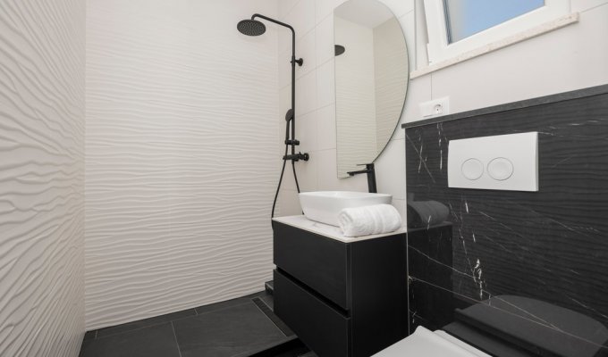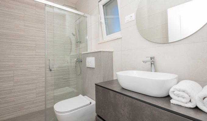 Experience a dreamlike vacation in Dalmatia. This modern vacation home not far from the interesting port city of Split offers you the highest comfort and the opportunity to completely escape from everyday stress and switch off. In the air-conditioned interiors you will lack nothing. Enjoy the magnificent furnishings in all rooms and the thus relaxed atmosphere. Here you can spend a wonderful time with your family or friends.