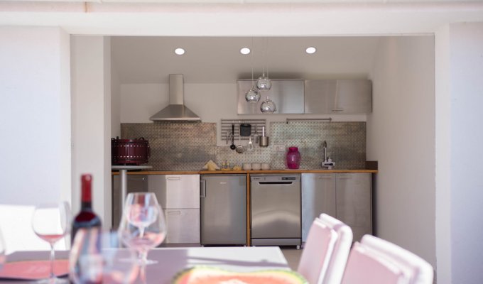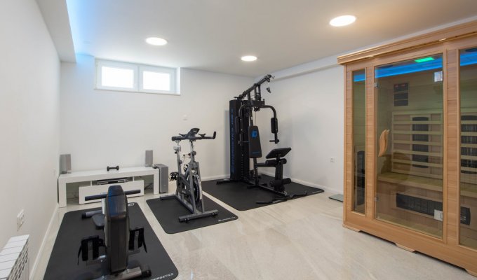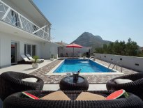 This beautiful and inviting holiday home with pool is located in the small village of Zrnovnica near Split. The fully equipped living area is located on the ground floor, from where you can access the pool with counter-current system and massage jets. The sleeping area with bathrooms is located on the upper floor. Two of the bedrooms offer a magnificent view of the sea. Relax by the pool, where you will also find the summer kitchen. Spend pleasant hours in the large recreation room, which could also pass for a wellness corner, as there is a hydromassage tub, sauna and fitness equipment. By car, you can reach world-famous archaeological sites from ancient times in the ruins of Salona and Split.