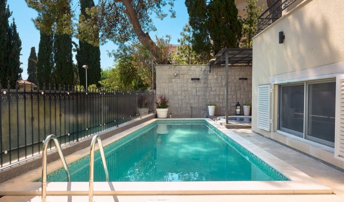 Would you like to spend your vacation in one of the most beautiful parts of Split? Here you are less than five minutes walk from the most famous city beach in Croatia: Bacvice beach! This beautiful villa extends over the wine cellar, the first floor with an activity room with a projector and three more floors with a sauna and a checkroom on the top floor. The vacation home is modern and furnished with tasteful designer furniture. You have several different terraces at your disposal with an outdoor pool and jacuzzi on the first floor. The old town is located about 1.2 km away and is within easy walking distance.