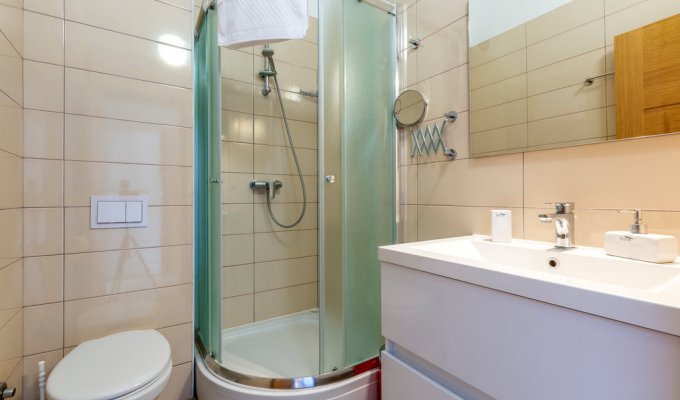 This exclusively furnished holiday home is the perfect accommodation for a larger group. On the ground floor there is a spacious living room with kitchen. From the terrace in front of it you have an unforgettable view of Split and the sea. The swimming pool also has a shallow part for children. On the floors there are three fully furnished apartments with three bedrooms each. In the basement you will find a fully equipped gym, billiard room, a konoba (tavern) and a room for wine tasting. There is also a sauna next to the pool. The huge estate also has a tennis court, football pitch, a cottage with a barbecue and a small summer kitchen. Possibility of massage, manicure and pedicure for a fee and in consultation with the owner.