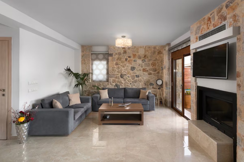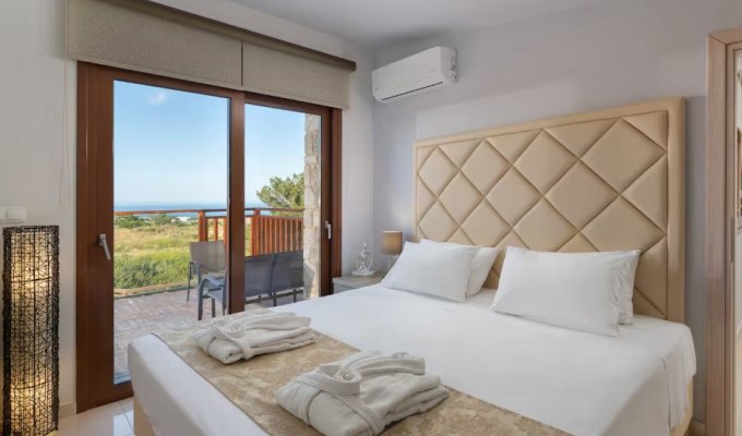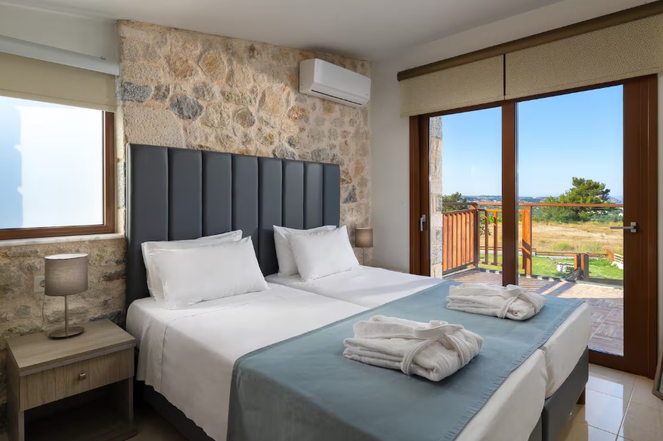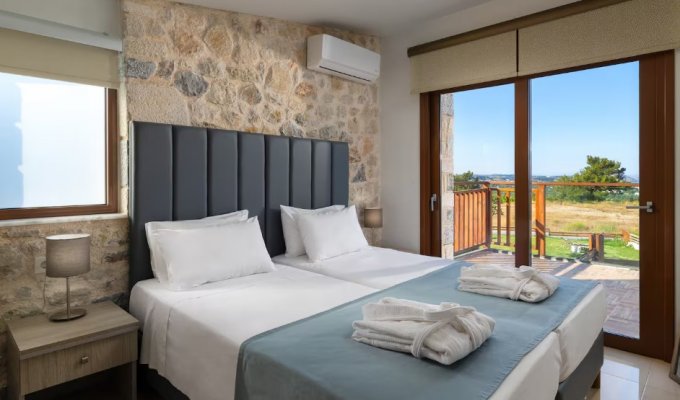 Built from local natural stone, the villas blend harmoniously with the surrounding landscape and offer spectacular panoramic views of the Aegean Sea and the hills of Rhodes. The setting is both peaceful and intimate — ideal for a truly relaxing and rejuvenating getaway.