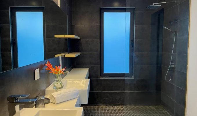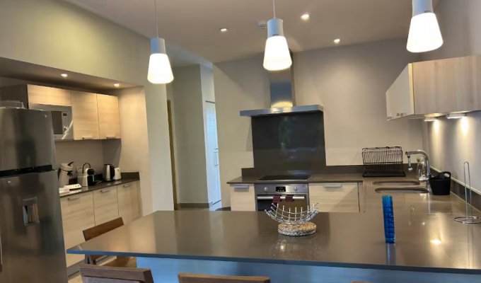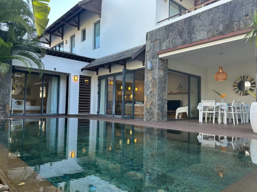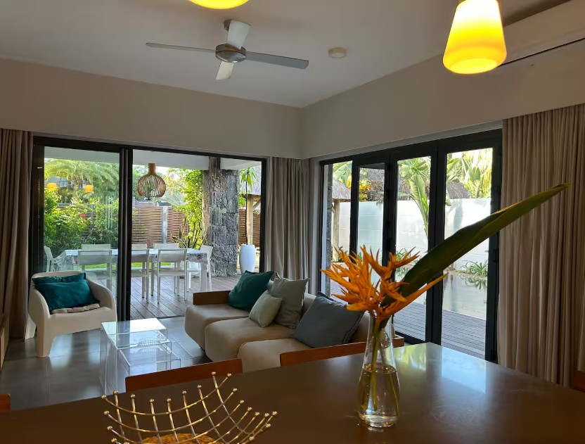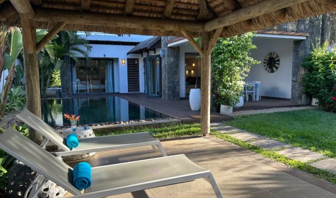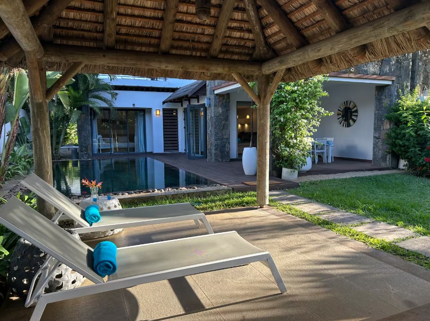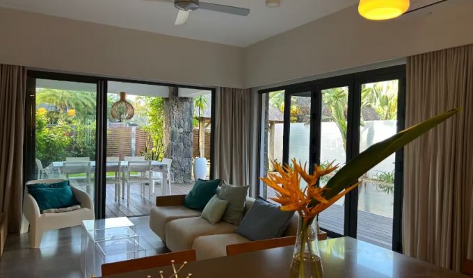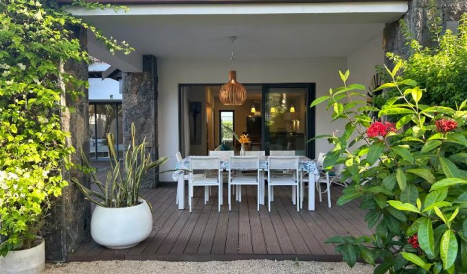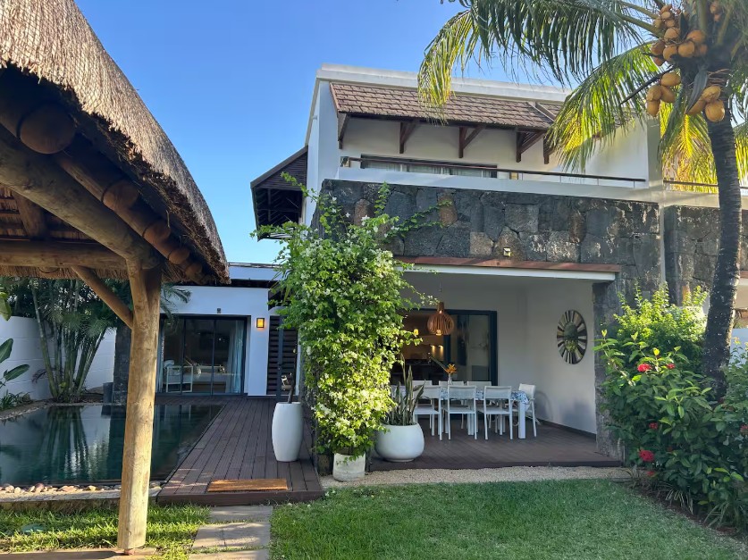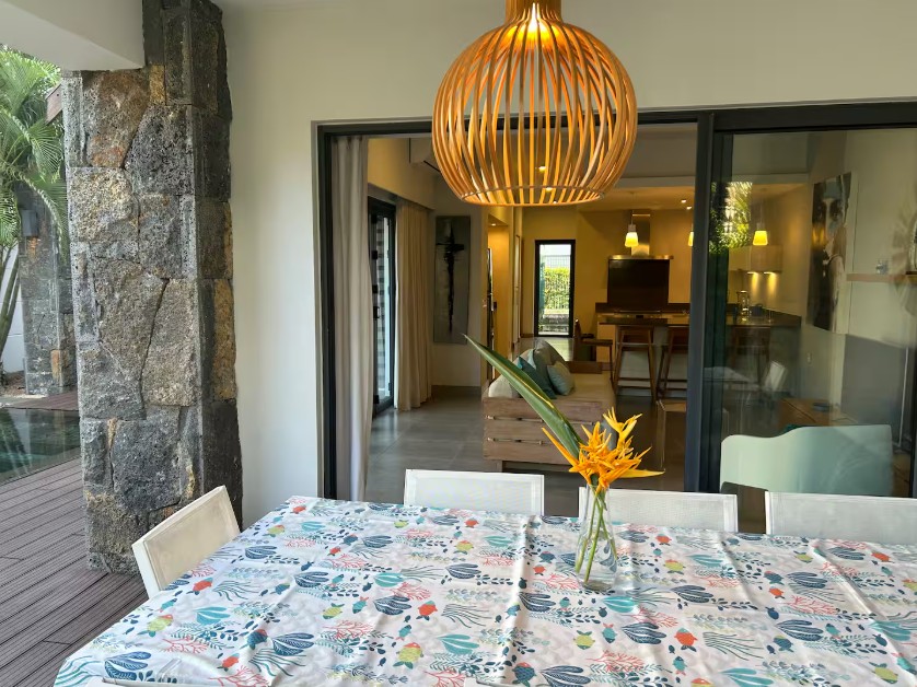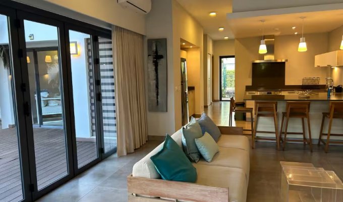 The villa is fully equipped and furnished with its very spacious 3 en-suite bedrooms, an infinity pool, and its lush garden, making it ideal for family vacations. It is located just 3 minutes on foot from Mont Choisy beach, the largest beach in the north of the island. The location is perfect, close to the most beautiful beaches in the north, as well as shops, pharmacy, bank, restaurants, cinemas, and golf.
