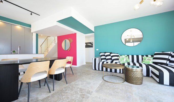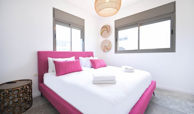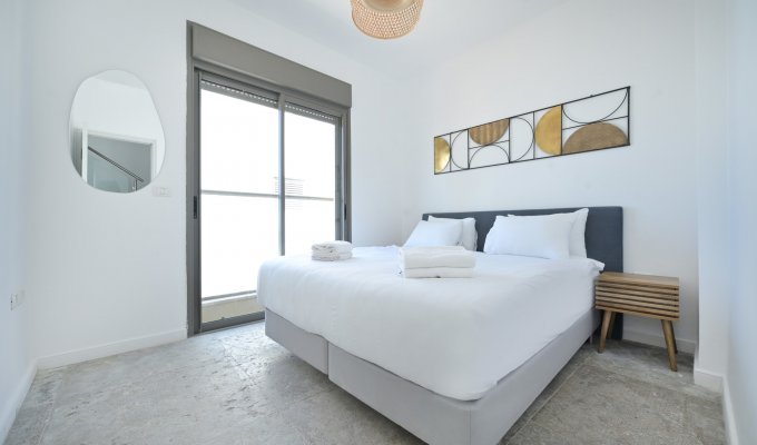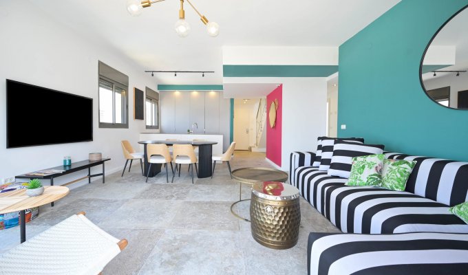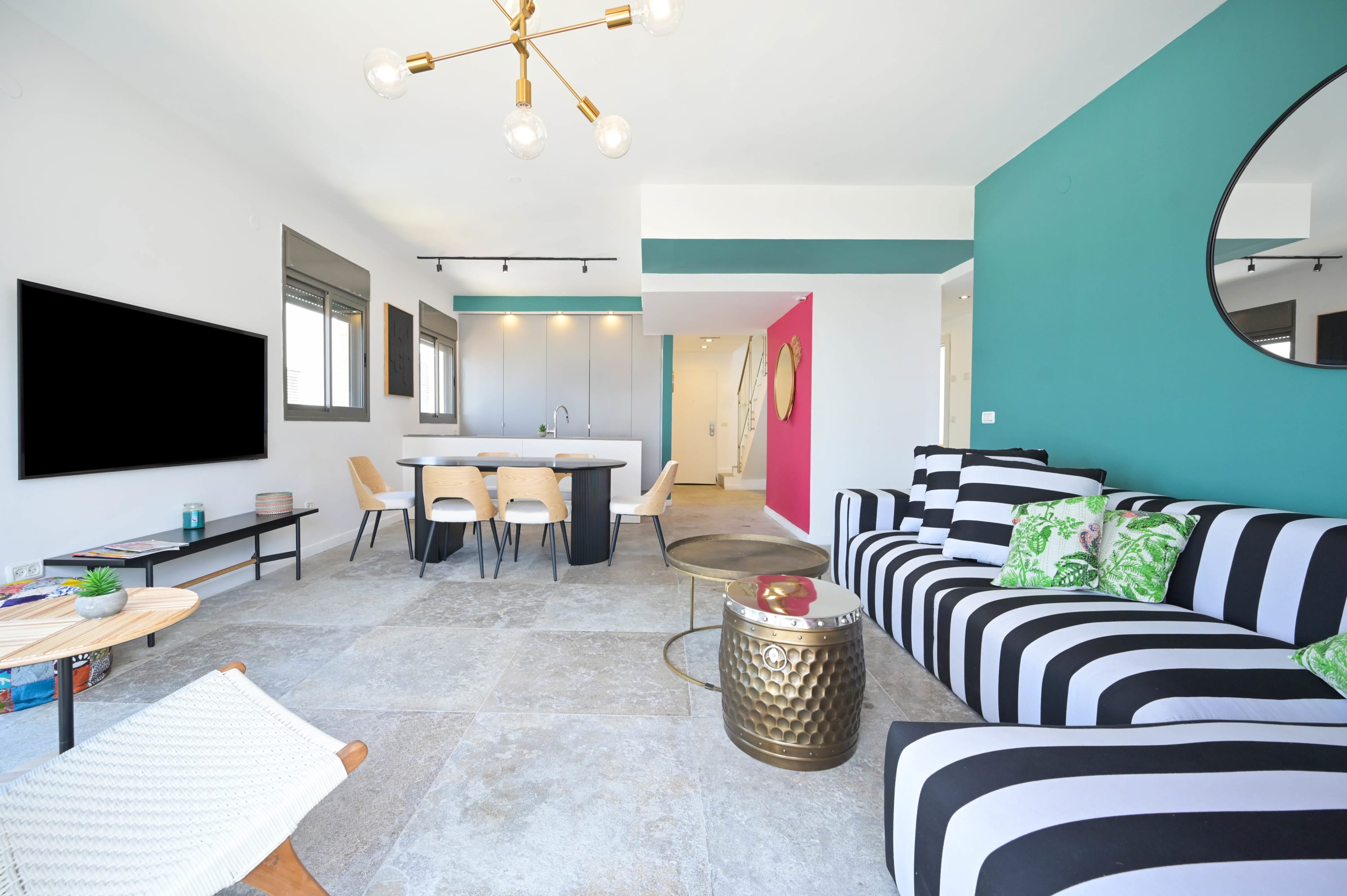 Located on the vibrant Ezra Hasofer Street in the lively Banana Beach neighborhood, this chic 4-bedroom, 3.5-bath apartment offers a stylish stay for up to 8 guests. Perfect for families or groups, the spacious apartment features stunning beach views, a generous living area, and modern amenities for a memorable getaway.