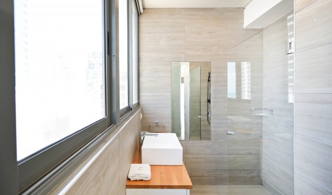 Guests have full access to the entire property, including the well-equipped kitchen, spacious living areas, and private balcony. You'll also receive access to the app, which provides local recommendations, guidebooks, and in-room services like food delivery and Shabbat catering.