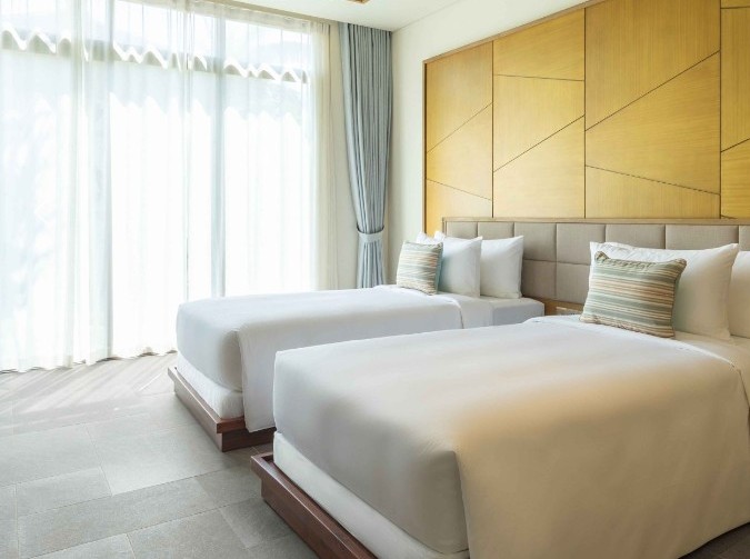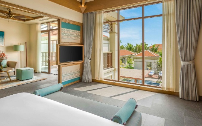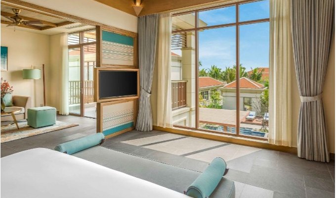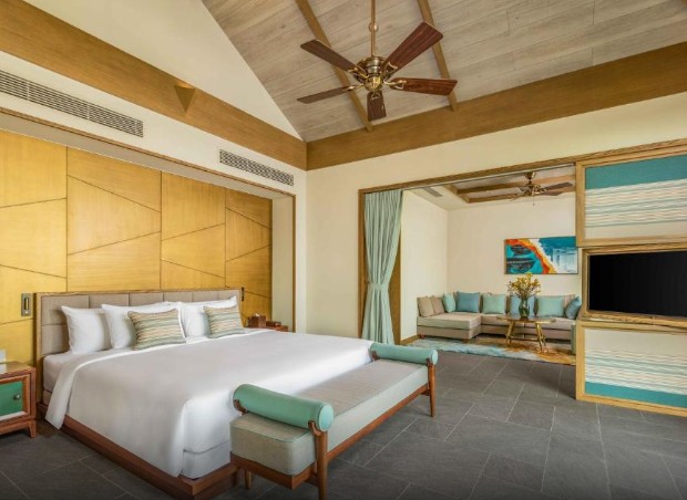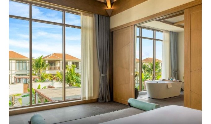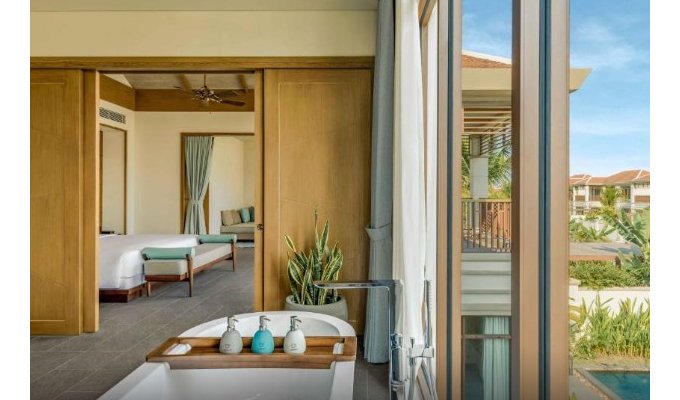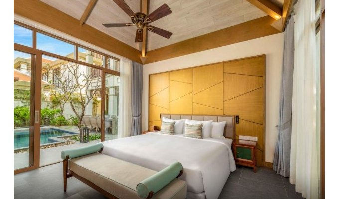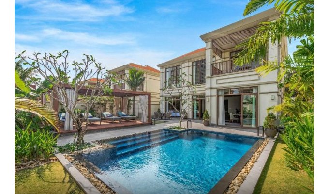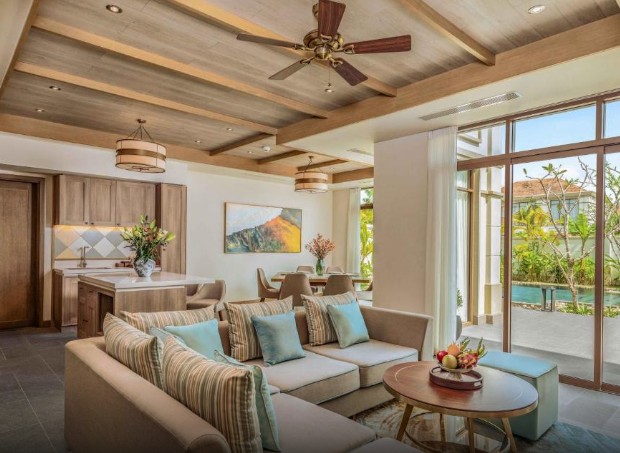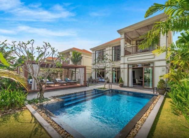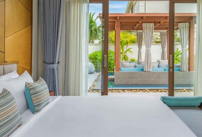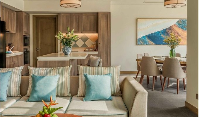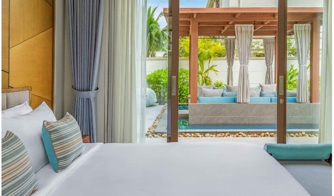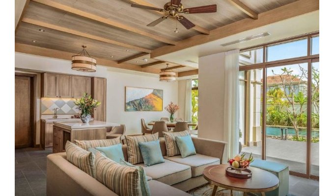 Our beautiful Three Bedroom Ocean Premium Pool Villa offer between 479-539 sqm of living space, making them the perfect choice for multi-generational families or large groups. On the ground floor, these spacious villa feature a large living room and dining area overlooking the lush garden and private pool. The three bedrooms offer a mix of king and twin beds on the second floor with an amazing view over the blue ocean, as well as a private en-suite king bed in the tranquil courtyard. Stepping outside the villa, a private pool beckons, while sun-seekers can bronze on loungers or relax in the covered sala.