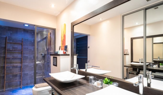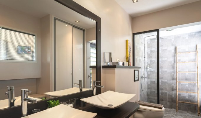 The villa boasts a remarkable authenticity, thanks to its fine materials and exotic woods, while also benefiting from the latest technology for modern comfort. Facing south, the swimming pool and terrace with jacuzzi enjoy optimal sunshine throughout the day.