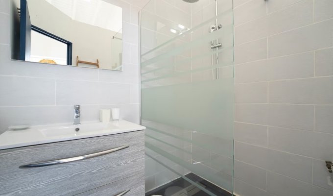 Single-storey villa with ample ventilation and large openings leading to an exotic wood deck bordering the pool with a sea view. A spacious, fully equipped kitchen opens onto the living room and terrace, featuring 4 bedrooms, one with its own private bathroom, and 2 shower rooms with hairdryers, one of which is outdoor. There is a carbet for aperitifs, along with sun loungers and a hammock for napping.