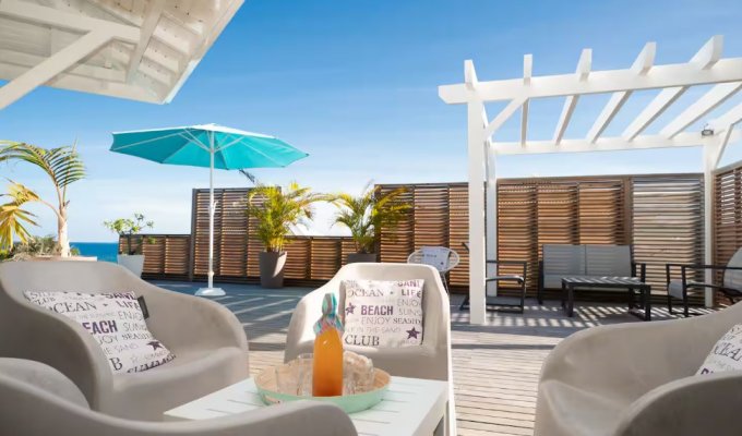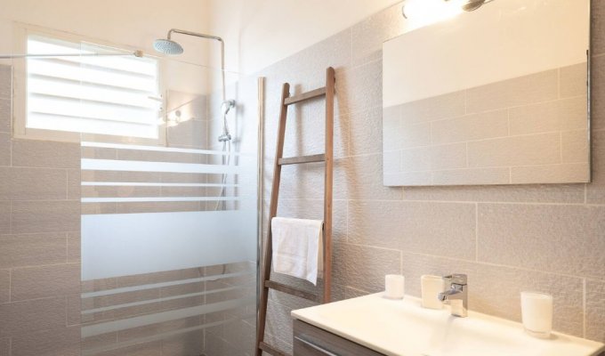 An incredible outdoor space around the pool facing the sea, with no direct neighbors and the “Club Med” beach less than 5 minutes away.