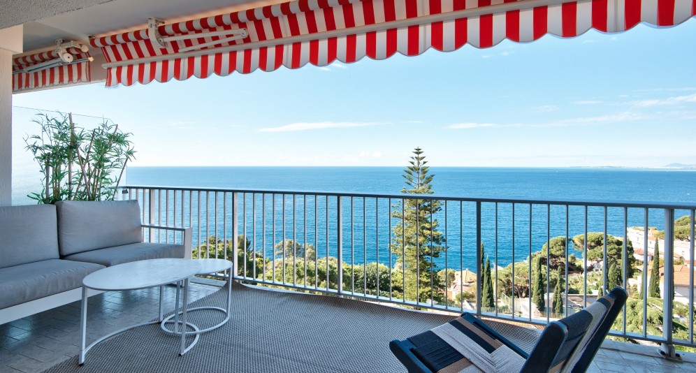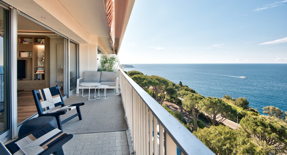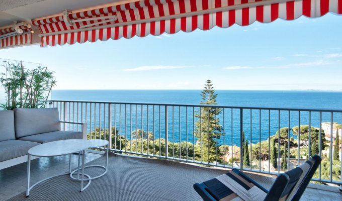 3-room apartment of approximately 95 square meters with a 32 square meter terrace, located in a residence with a swimming pool, parking, and panoramic sea view.