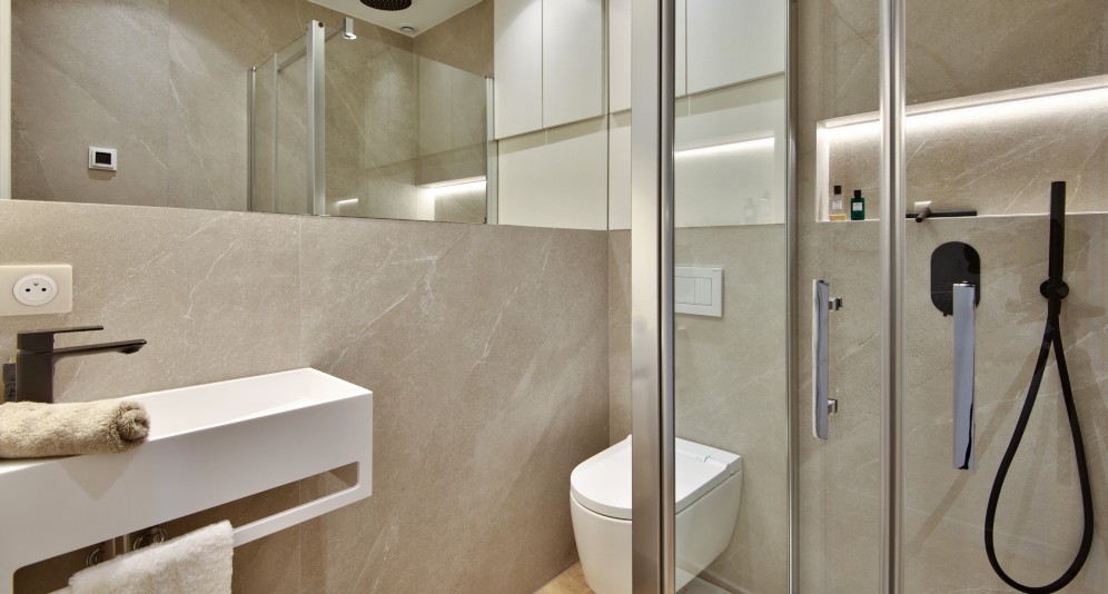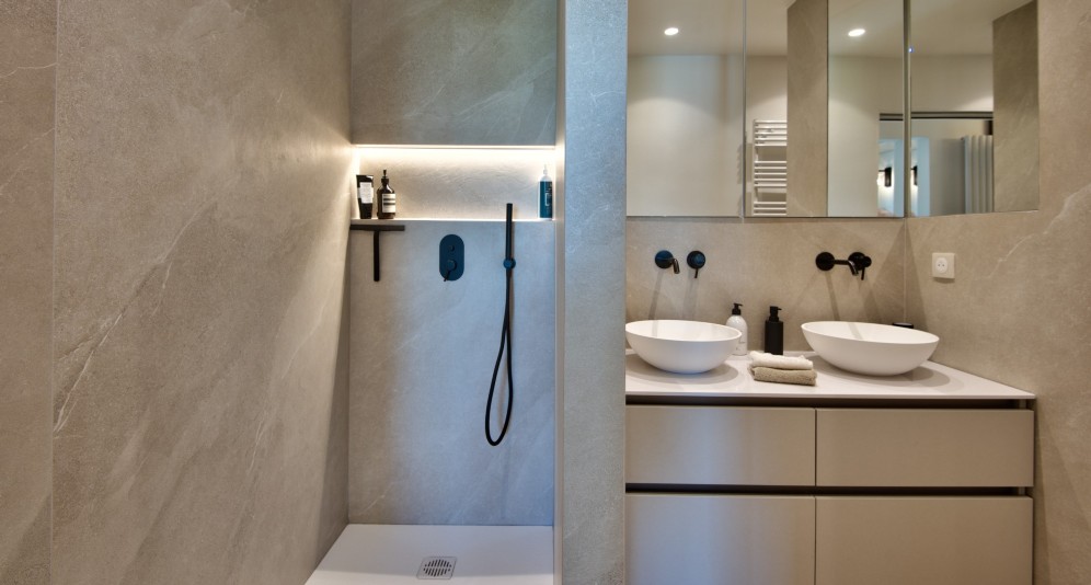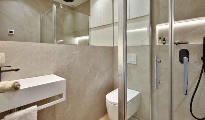 The apartment is air-conditioned, recently renovated in a modern and sleek style, fully furnished and equipped.