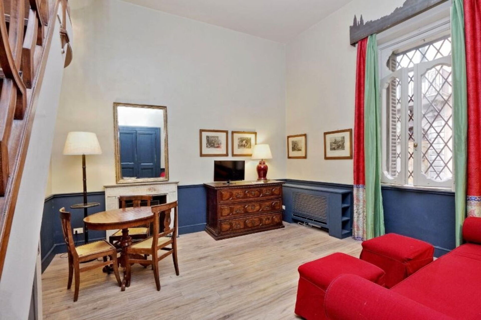 Studio apartment with mezzanine, located on the ground floor, within walking distance of Piazza di Spagna and Piazza Barberini, in the elegant Rome’s Tridente. The apartment is located in the very heart of Rome historic centre: this is the perfect starting point to reach Piazza di Spagna (Spanish Steps), the Trevi Fountain, Montecitorio (the Italian Parliament) and the Ara Pacis.