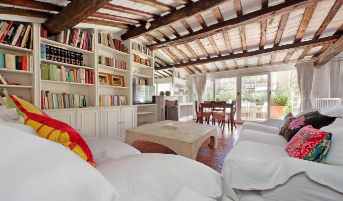 Magnificent, spacious duplex with a terrace, located on the third and fourth floors with elevator access, in the heart of Rome's historic center. Comfortable and inviting, it's ideal for a short or medium-length stay, whether for business or to fully explore the capital and its tourist attractions. Enjoy a glass of wine while admiring the breathtaking views over the rooftops of Rome. It comprises two bedrooms and two bathrooms, including a master suite on the first floor, a kitchen, a living room, and a lovely sunny terrace on the second floor. The city's main tourist sites are easily accessible on foot or by public transport. Piazza Navona, Campo de' Fiori, and Castel Sant'Angelo are just a short drive away. Vatican City and Largo di Torre Argentina are only a 15-minute walk. Services