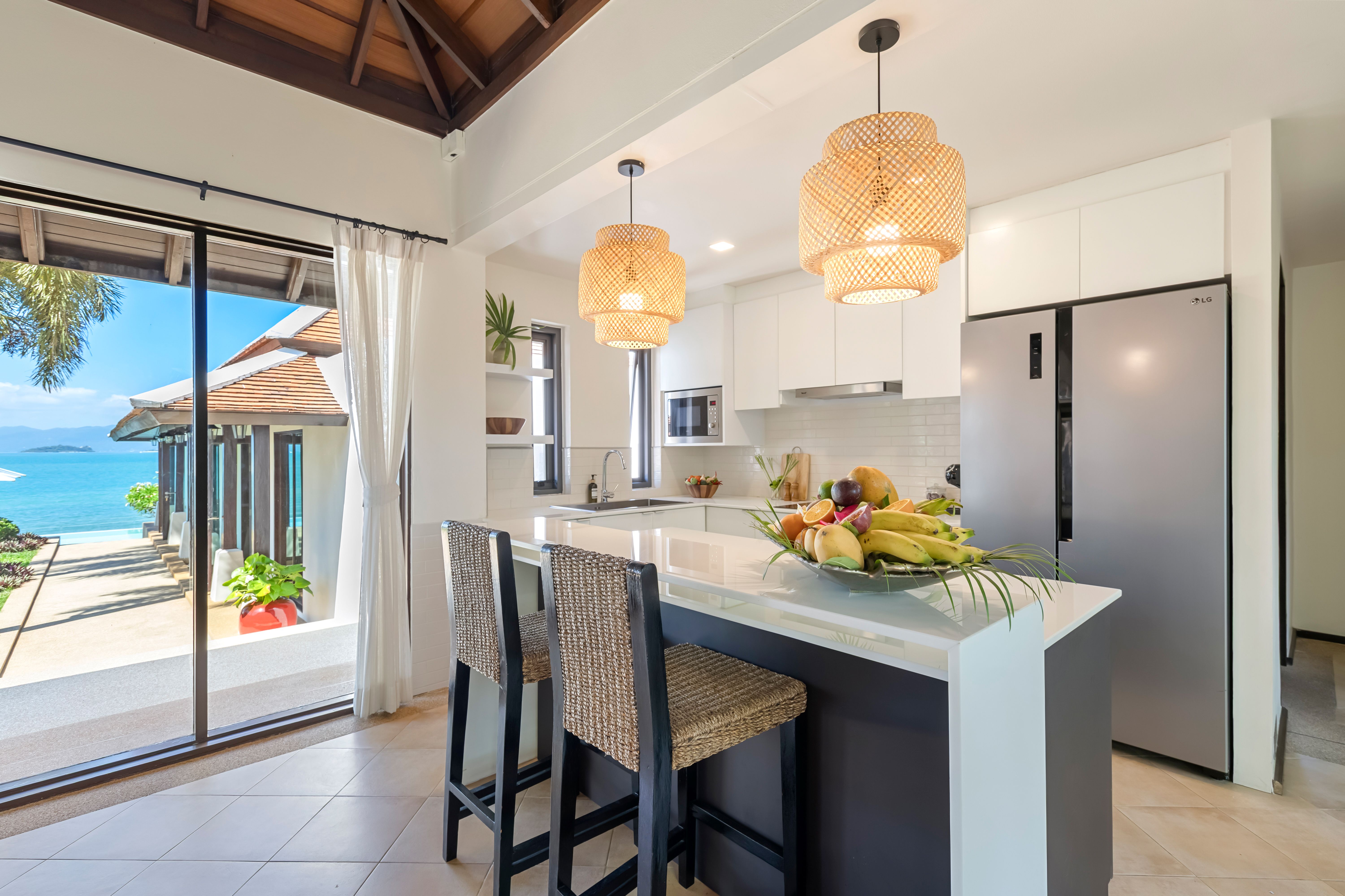 to an open-plan kitchen. Villa Bacaya is perfectly situated on Bangrak Beach — a prime area blending Thai charm and European style. You’ll be moments from excellent local and international dining, and perfectly placed between the vibrant hubs of Bophut and Chaweng.
