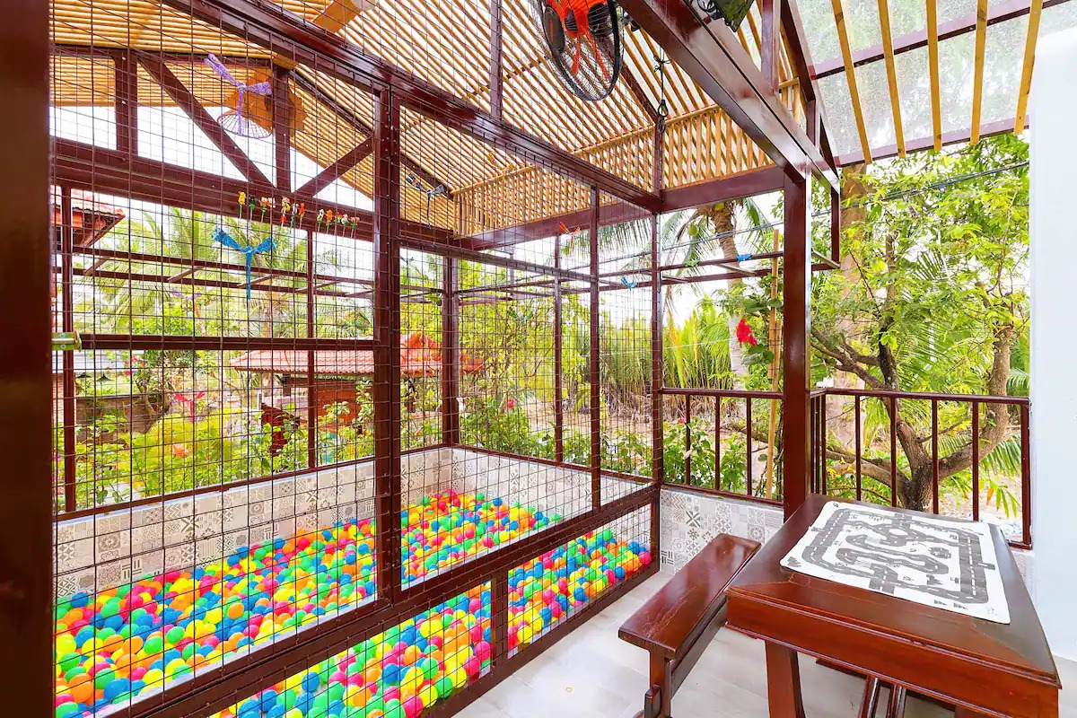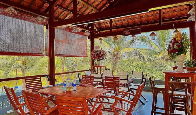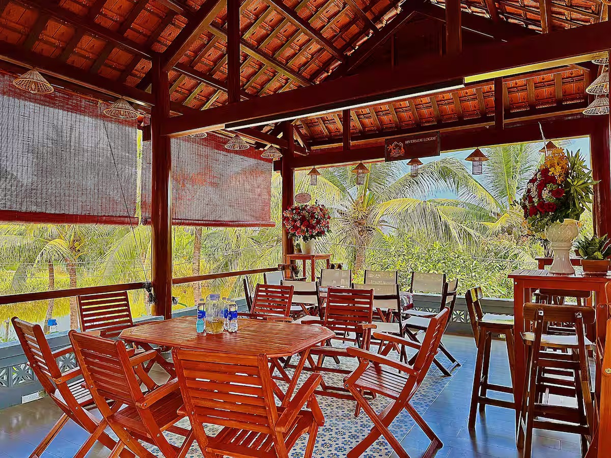 A relaxing lounge space on the **second floor with beautiful views of the coconut forest**.