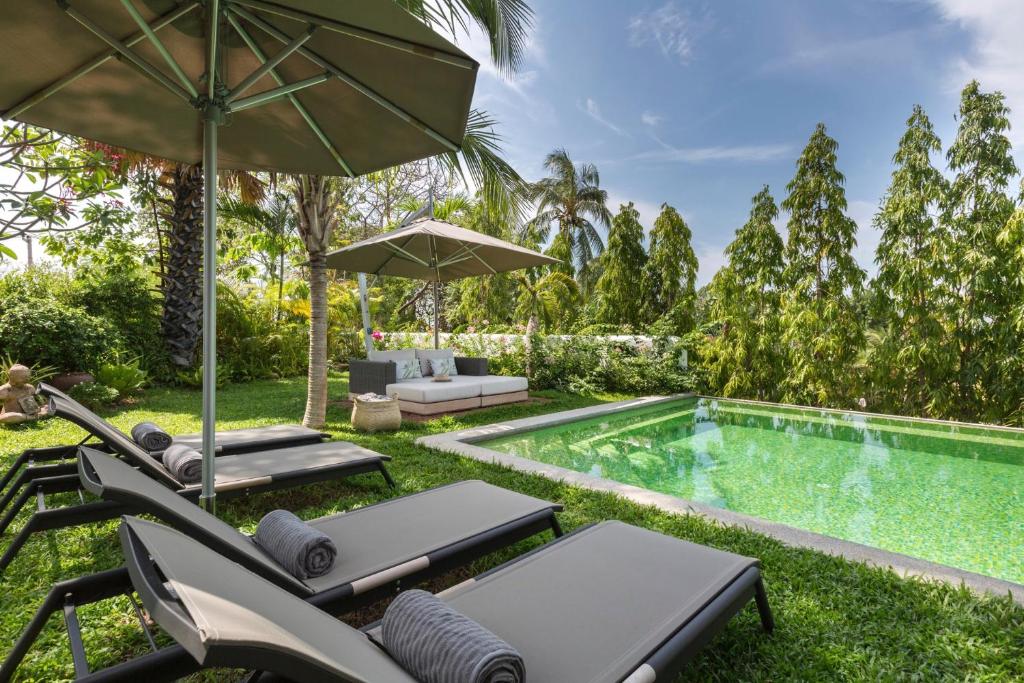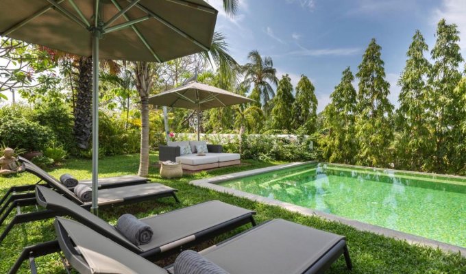 Start your day with breakfast on the shaded terrace overlooking the tropical garden, then enjoy the sun by the pool or explore nearby beaches, waterfalls, and temples.