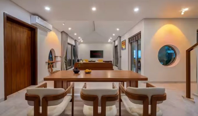Guests have exclusive access to the entire private villa, including all indoor spaces: the 5 bedrooms with en-suite bathrooms, the spacious living and dining areas, the fully equipped kitchen, and all balconies and terraces.