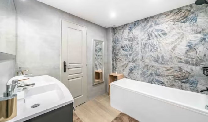 Designed to accommodate up to 6 guests, the apartment features a spacious and bright living room, a fully equipped open-plan kitchen, three comfortable bedrooms, and three modern bathrooms. A guest toilet adds extra convenience.