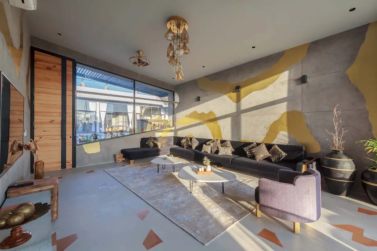 - Interiors adorned with concrete, a theme that flows from floor to ceiling