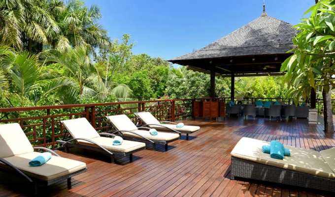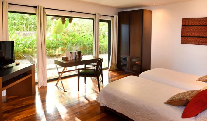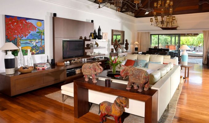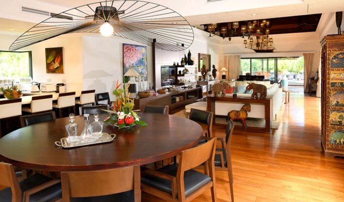 The villa offers 400 m² of living space, nestled within a splendid 3,000 m² tropical garden, creating an idyllic setting for an unforgettable holiday.