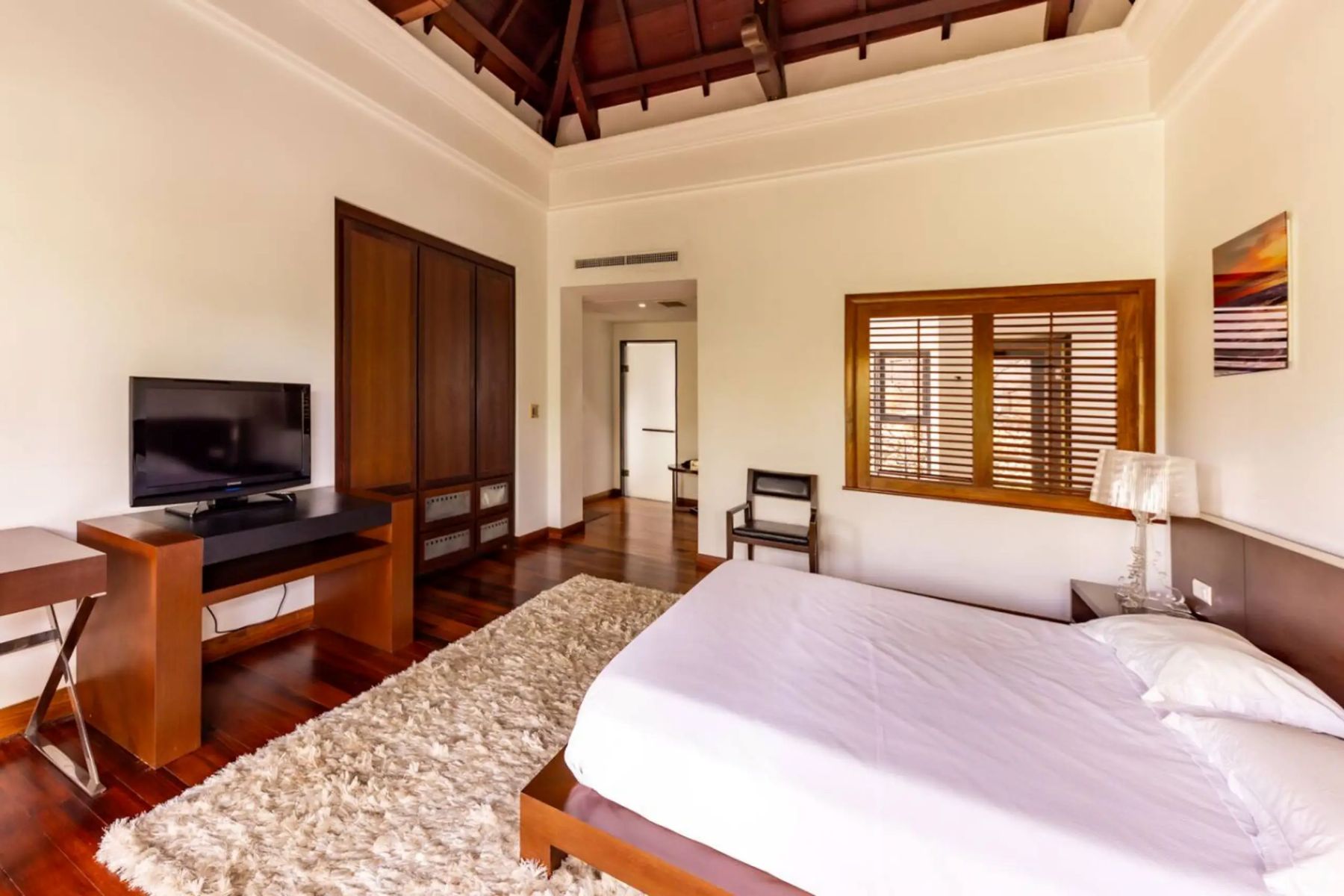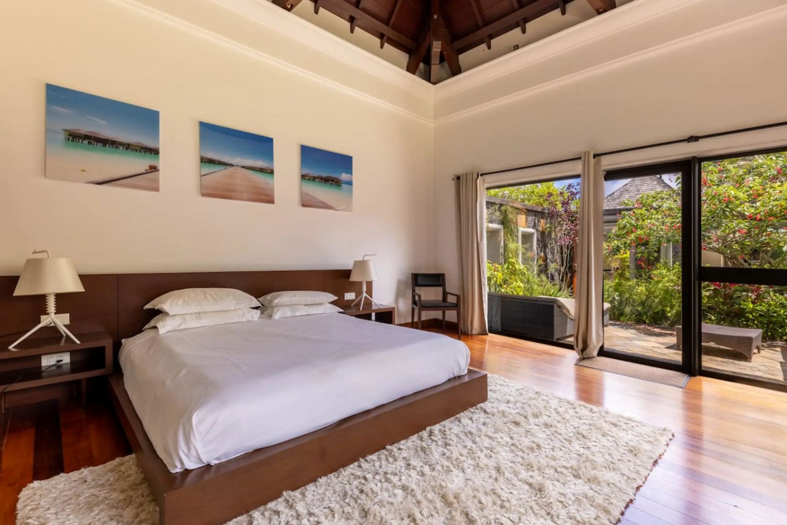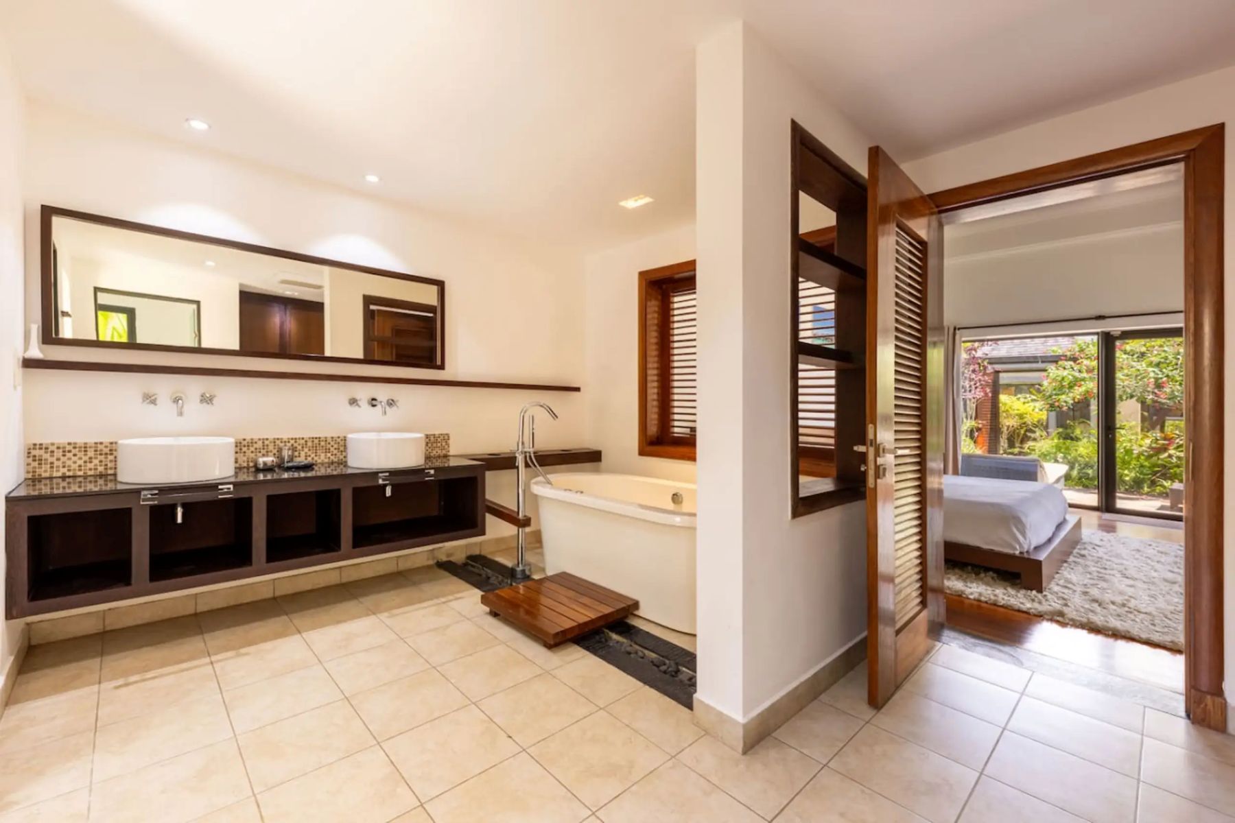 Outside, the infinity pool invites you to relax in the heart of a meticulously landscaped tropical garden, perfect for rest and escape.