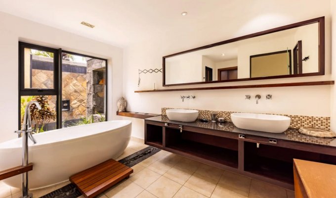 Discover Domaine de Belle Rivière, a true haven of peace on the south coast of Mauritius, where this sumptuous villa is nestled in a protected environment and surrounded by 3,000 m² of lush gardens.