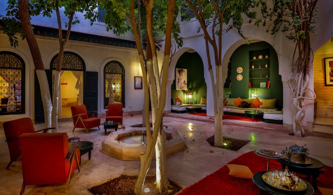 Only , this riad has 12 rooms which are distributed around the two patios. The complex, which has been restored in a style that is both elegant and simple, is capped by a large terrace on two levels , a real invitation to relax with his nomadic tent in which to enjoy a drink or breakfast.