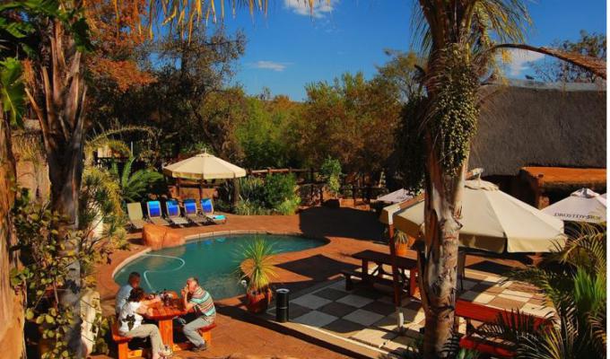 The lodge hosts up to 52 guests in spacious luxury and executive suites which are stylishly decorated with every facility. The lodge offers a restaurant and bar, reception, lounge, boma (you will sit around an open bushfire, relax and enjoy some stargazing), chapel ( have your wedding here!) and modern, state-of-the-art conference facilities. This lodge can offer superb international cuisine in the warm and friendly atmosphere of the restaurant and open-air lapa-areas. Traditional barbecues, picnic baskets and bush dinners under evening skies are only a few of the available dining options.
