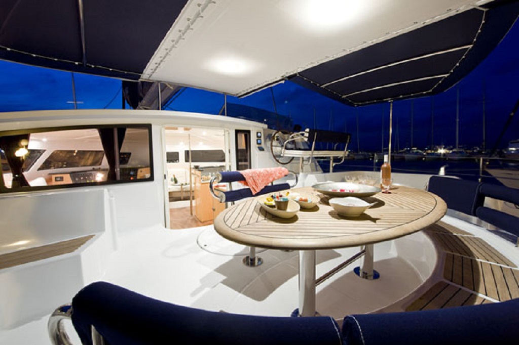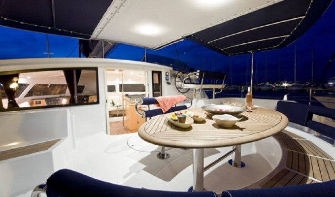 This catamaran ELEUTHERA 60 FOUNTAINE PAJOT with crew is equipped with a kitchen annex, 2 kayaks, fishing equipment, palm, mask tube, wakeboard.