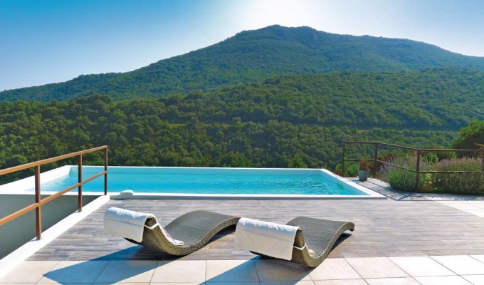 This dreamlike villa near béziers offers exceptional panoramic views of the wooded low mountain range and the village. In addition to an ultra-modern kitchen with central island, which opens out to the large living room, this tastefully decorated apartment also features a bathroom with both bath and shower. A partly covered terrace and a stunning swimming pool add to the beauty of this contemporary property. The owners live 50 metres away but their residence does not overlook the pool area. The nature park Haut-Languedoc, offering wonderful trips awaits you, in this region.