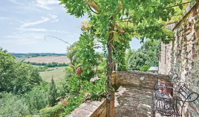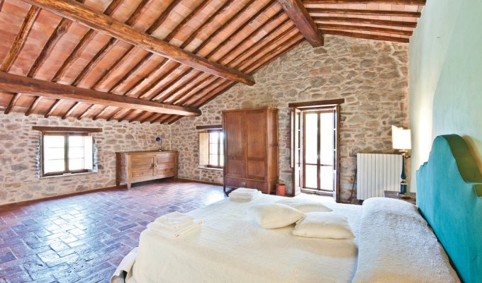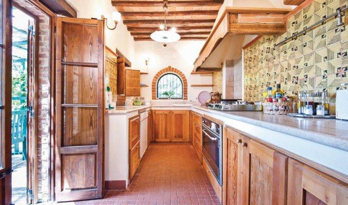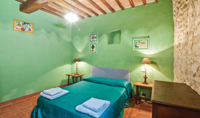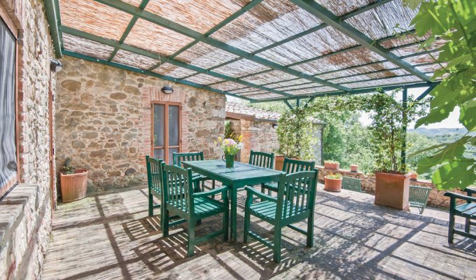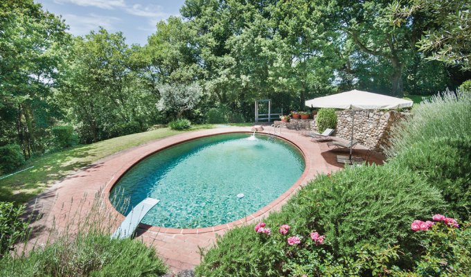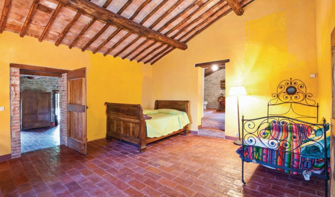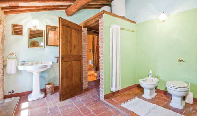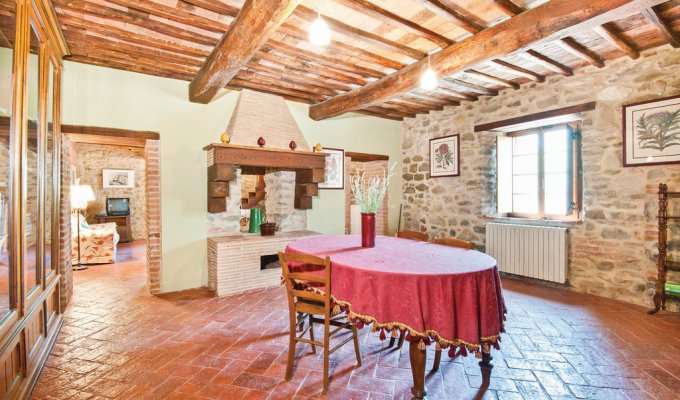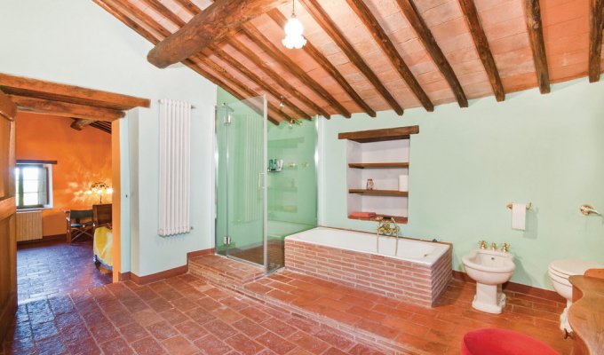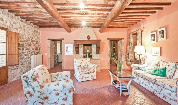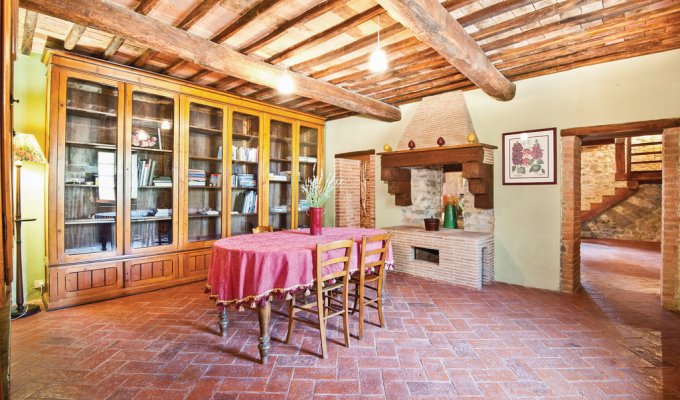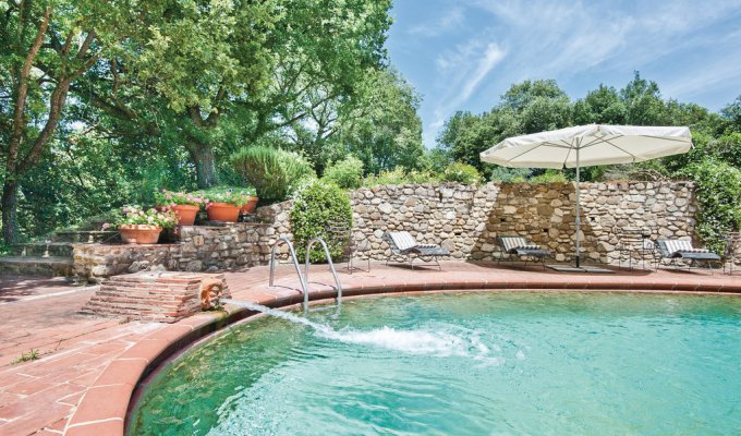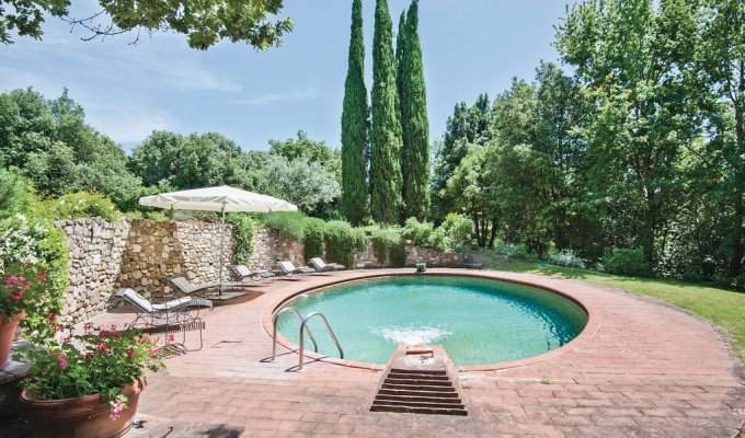 Lovely detached house near Rapolano Terme (4 km). The property is located in a quiet area surrounded by greenery, ideal for a relaxing stay. Beautiful views of the Tuscan countryside, rich in forests and olive groves. Large exclusive garden with lawn and equipped terrace, which leads to the private pool. Outside, chairs, deck chairs, sun loungers and a pergola for outdoor dining are available. The house is nicely furnished with some period furniture and three fireplaces. Ideal for a holiday in the countryside with the opportunity to explore the attractions of Tuscany: Florence (100 km), Siena (30 km), Arezzo (60 km), Lake Trasimeno (50 km). Unpaved access road (about 2 km), unsuitable for low cars.
