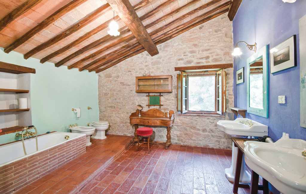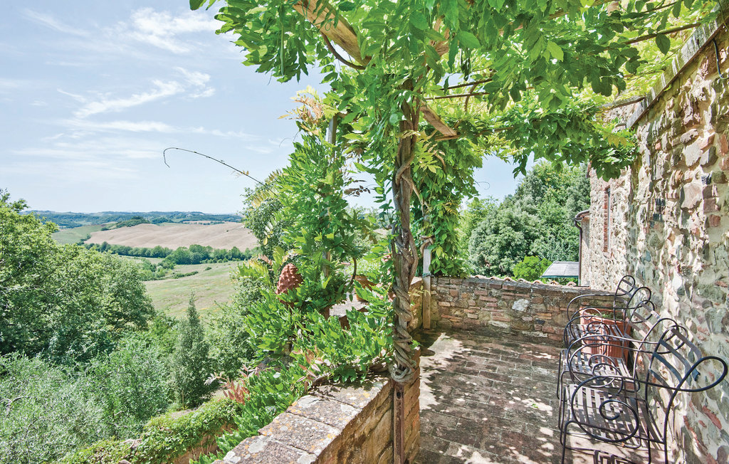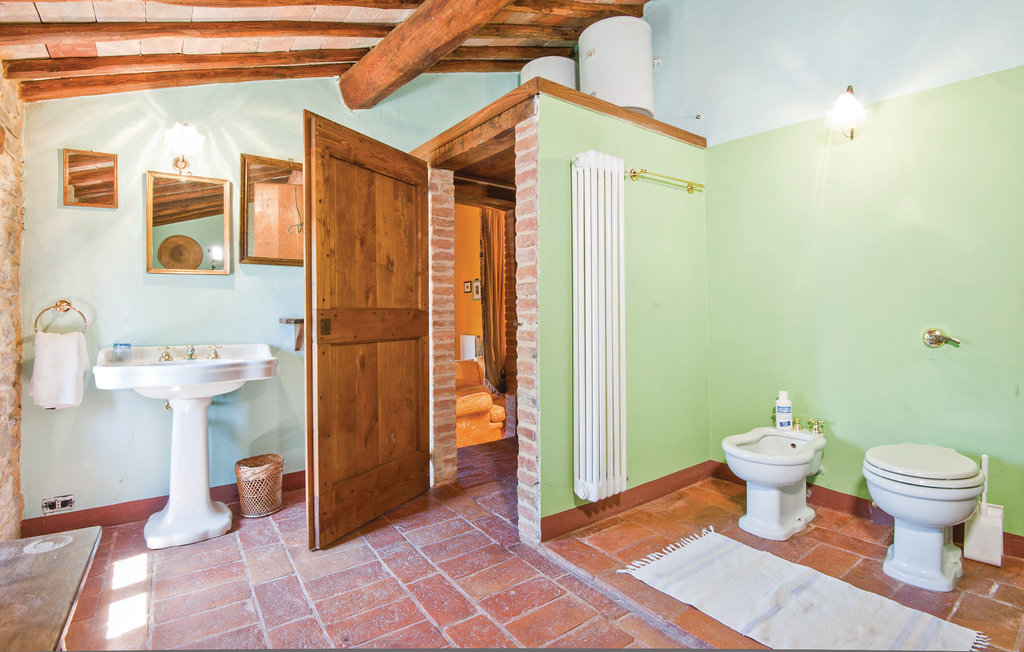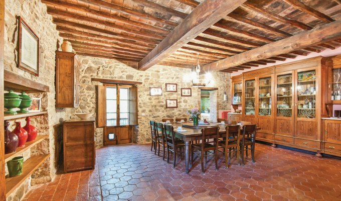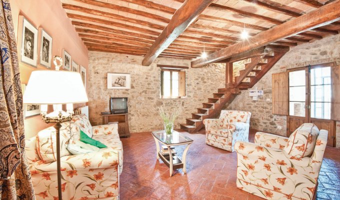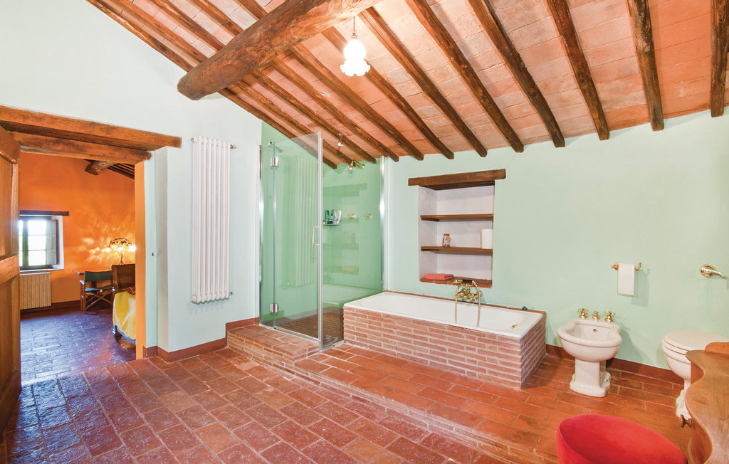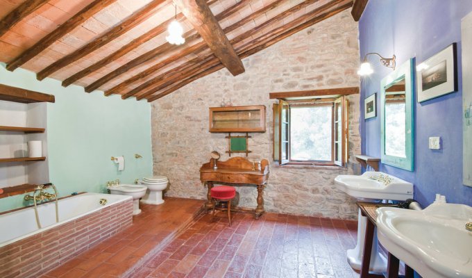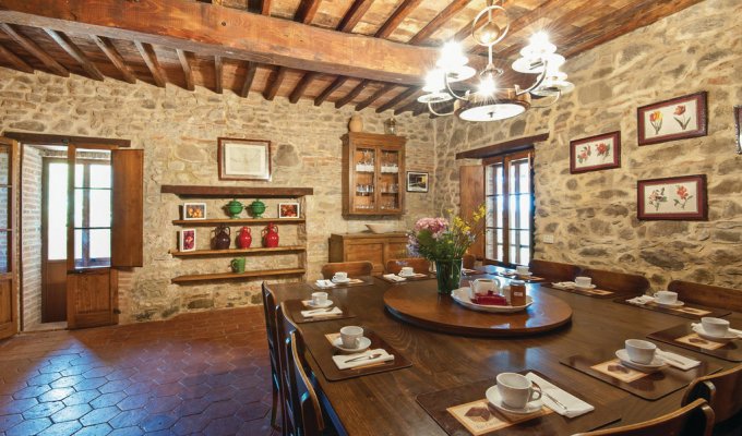 Lovely detached house near Rapolano Terme (4 km). The property is located in a quiet area surrounded by greenery, ideal for a relaxing stay. Beautiful views of the Tuscan countryside, rich in forests and olive groves. Large exclusive garden with lawn and equipped terrace, which leads to the private pool. Outside, chairs, deck chairs, sun loungers and a pergola for outdoor dining are available. The house is nicely furnished with some period furniture and three fireplaces. Ideal for a holiday in the countryside with the opportunity to explore the attractions of Tuscany: Florence (100 km), Siena (30 km), Arezzo (60 km), Lake Trasimeno (50 km). Unpaved access road (about 2 km), unsuitable for low cars.