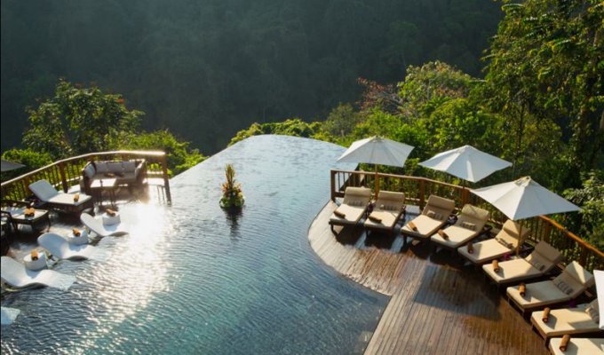 These luxurious villas take full advantage of the peace and tranquility of the surrounding jungle, combined with breathtaking views of the Ayung River and its cascading waterfalls below.