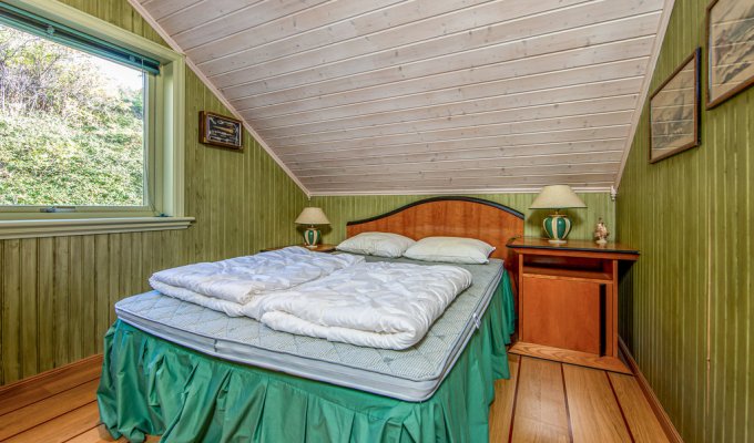 Wonderful little seaside house right by the water. Large terrace with a fantastic view. The house has good quality and tasteful furnishings in every room. The basement is 50 sq.m. and equipped with a fish preparation bench, a cooking stove for crabs etc. and lots of fishing equipment. The house lies amid beautiful scenery close to lesund with Geiranger and Trollstigen not far away. Neighbour 20m.