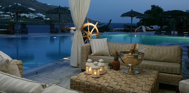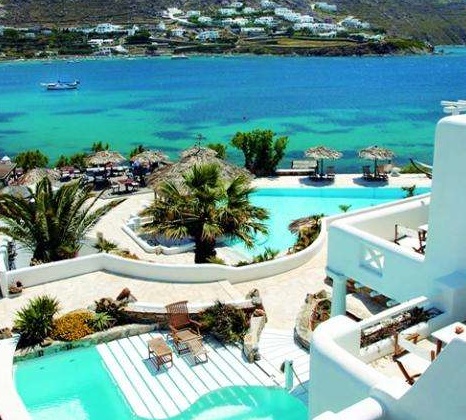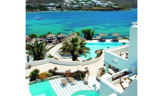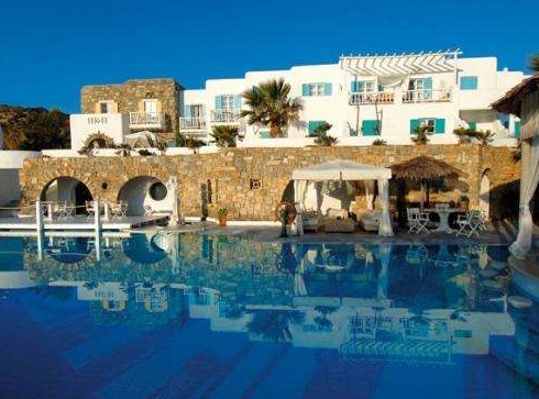 This hotel, renovated in 2006, is distinguished by its architecture. The cube buildings in the center of the green gardens and flowery, reflect the Cycladic architecture in this boutique hotel. The 40 rooms and suites have balcony or terrace with sea view.