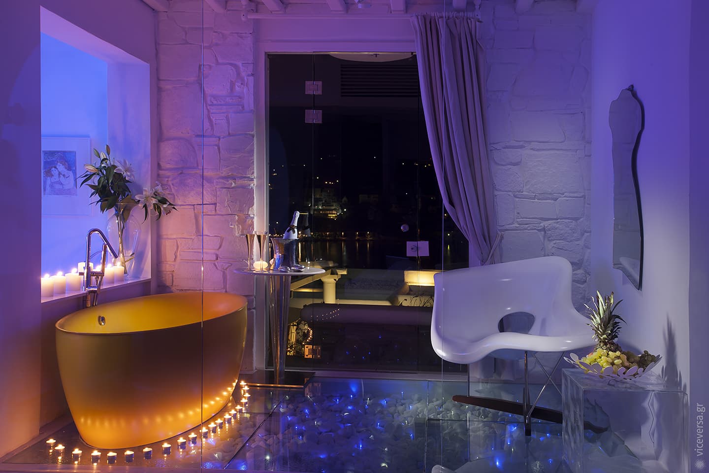 Kivotos the Hotel is located 5 minutes from the cosmopolitan Mykonos town, port and airport. A short distance from the intense nightlife of Mykonos. Sumptuous and panoramic views of Ornos Bay.