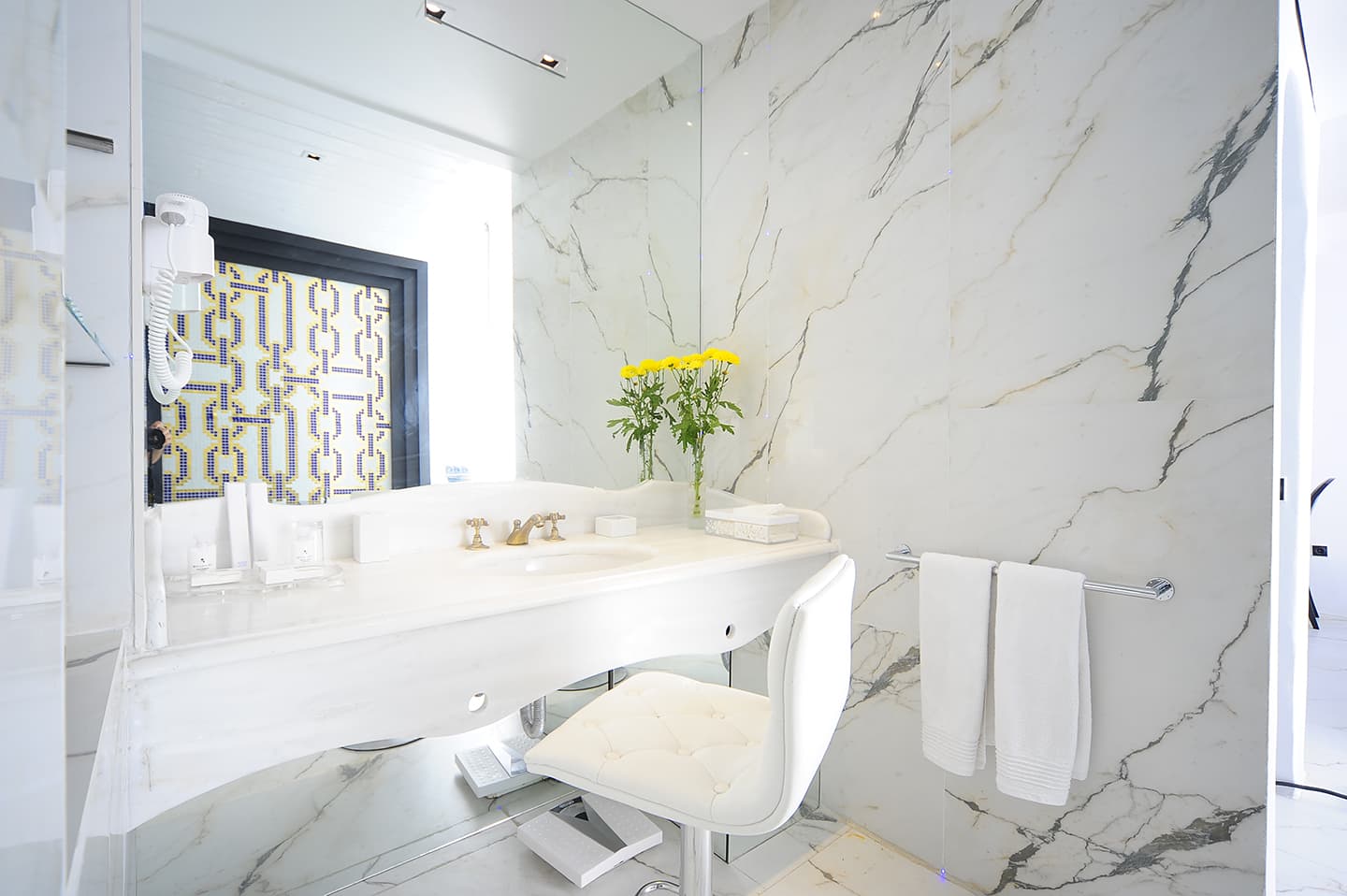 Each room is individually decorated and furnished and artistically, with bathroom (shower or bath), luxury toiletries, hairdryer, fridge, satellite TV, telephone, CD player, flowers and fresh fruit every day, air conditioning, safe, minibar. Internet access. The suites have additional living area and Jacuzzi.