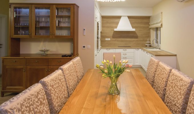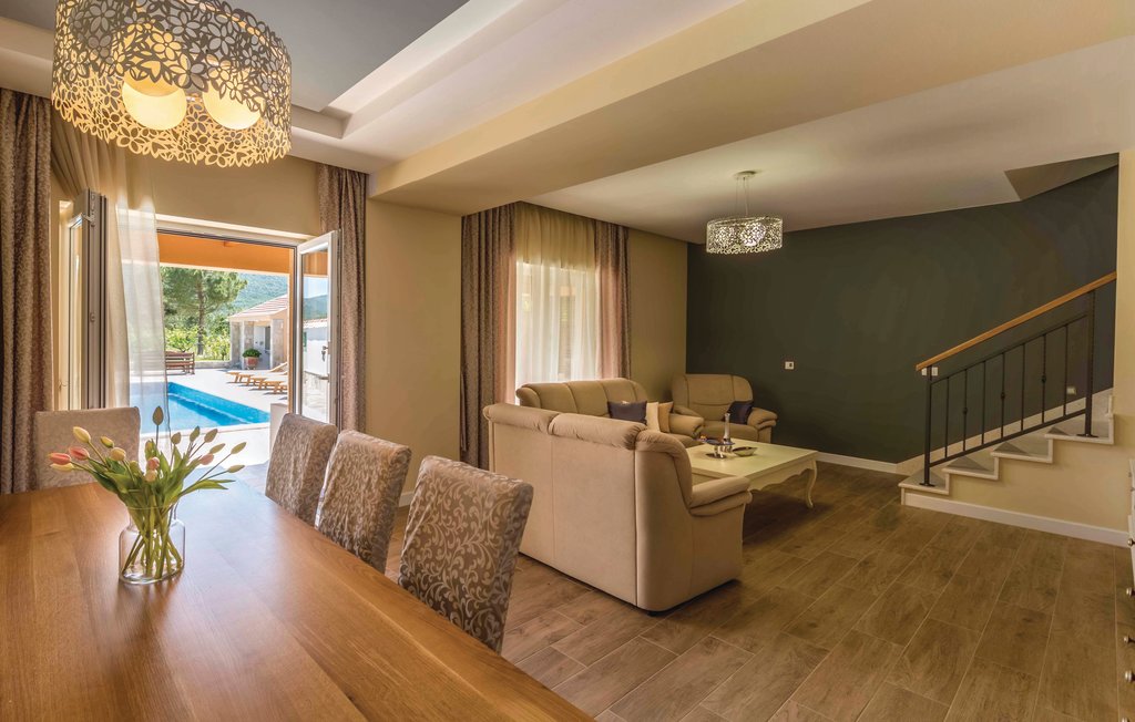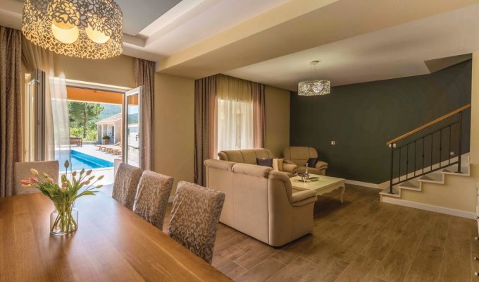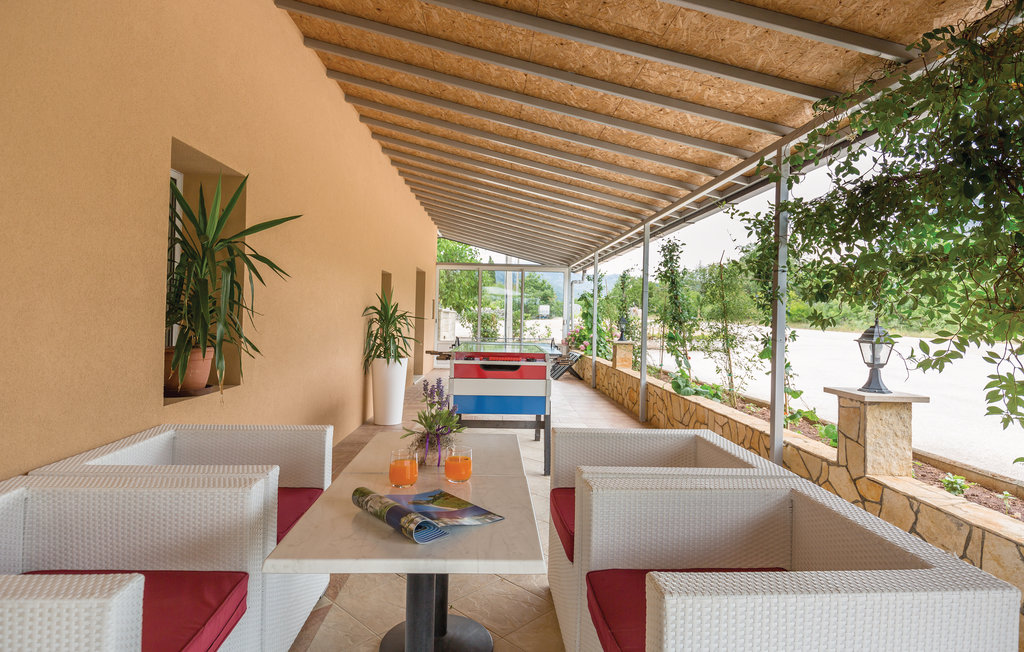 Enjoy the beautiful nature in a small village Zavojane in the hinterland of Makarska Riviera, where there is this beautiful house with a swimming pool. It is very comfortable and adapted to modern demands of today. For diverse and pleasant holiday experience there are fitness and recreation room, boccia, badminton, football game and playground for children. There are two spacious covered terraces on the ground floor, a summer kitchen with fireplace, and the swimming pool is equipped with hydro-massage jets. The owners sometimes stay in a separate building for maintainance, and with them you can arrange boat trips at surcharge. Expirience the beautiful beaches and plenty of entertainment for all ages of Makarska Riviera.